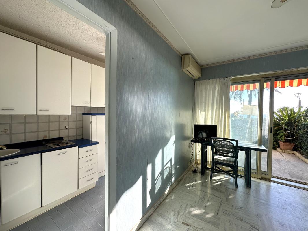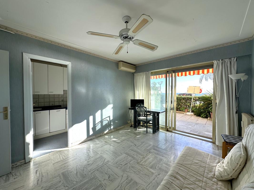 Idéalement situé au sein d'une résidence de standing en bord de mer, à proximité immédiate des commerces et de la gare SNCF, ce studio de 26,62 m² (Loi Carrez) offre un fort potentiel après modernisation. Il bénéficie d'une exceptionnelle terrasse de 23 m² avec vue mer, véritable atout pour profiter pleinement du cadre privilégié. L'appartement se compose d'une entrée, d'un séjour, d'une cuisine indépendante ainsi que d'une salle d'eau avec WC. La location saisonnière est autorisée, faisant de ce bien une opportunité rare, aussi bien pour un investissement locatif que pour un pied-à-terre sur la Côte d'Azur.