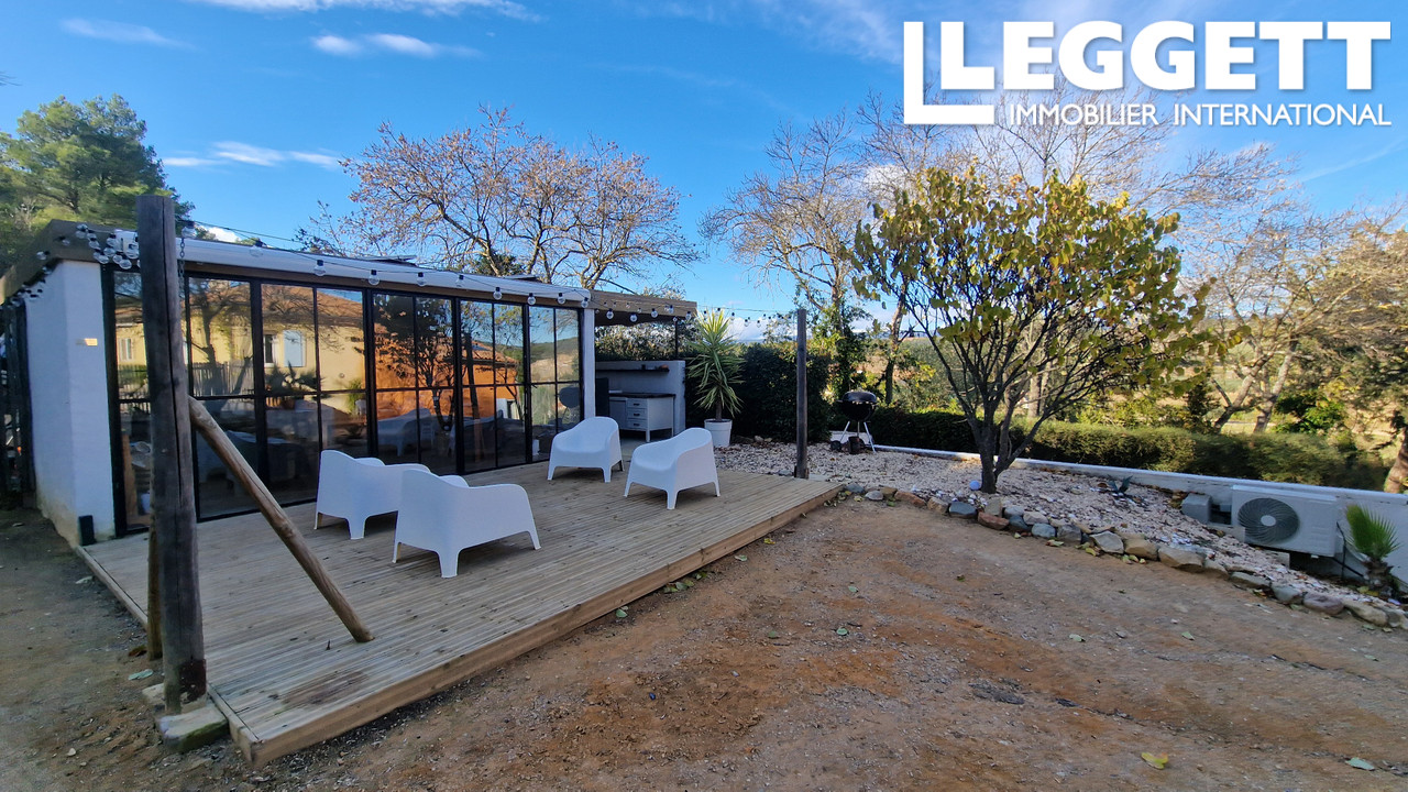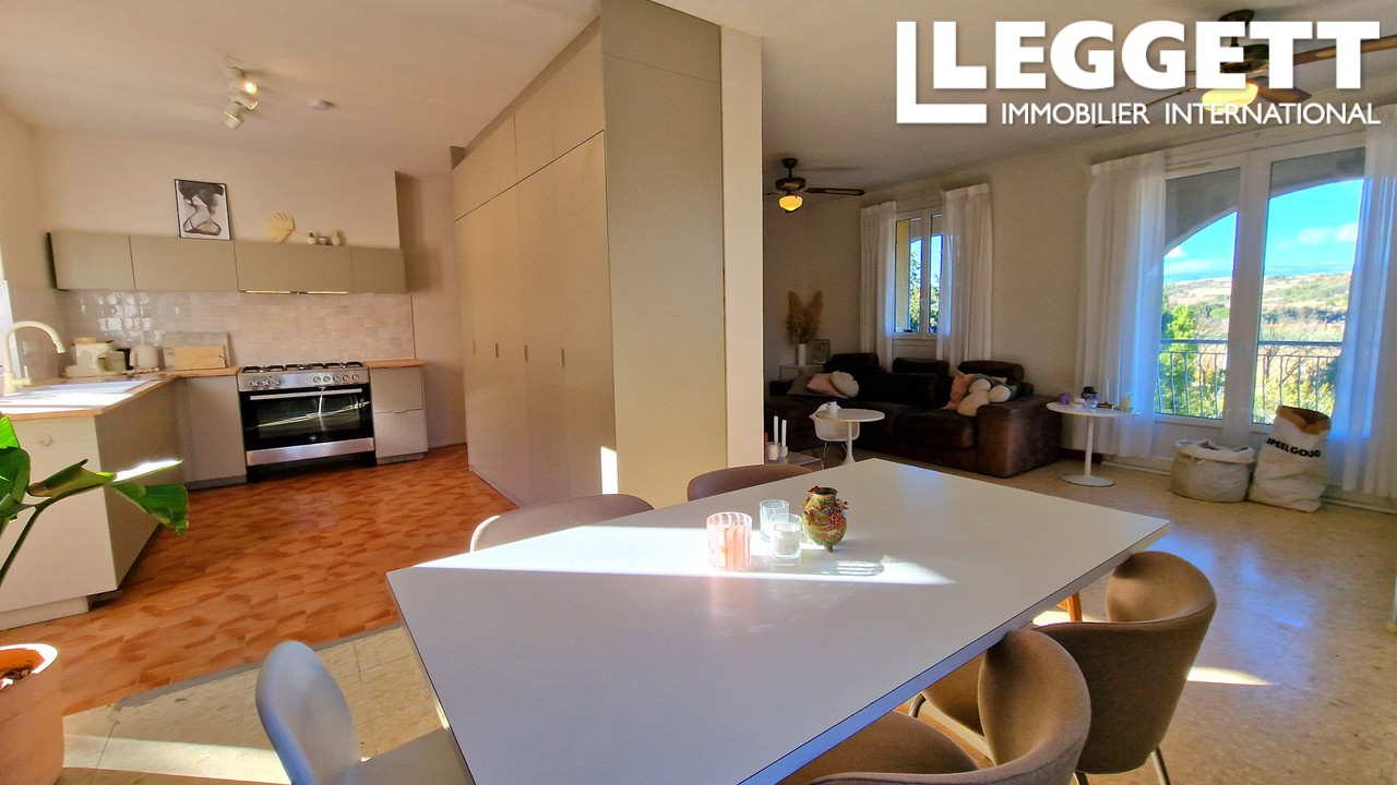 A41945CST34 - Perché dans une position dominante au coeur du Minervois, ce magnifique propriete entièrement rénové bénéficie de vues imprenables et dégagées sur les vignobles et la campagne environnante. Il offre un équilibre rare entre art de vivre et potentiel de revenus avéré, comprenant une maison principale de trois chambres ainsi que quatre gîtes indépendants.