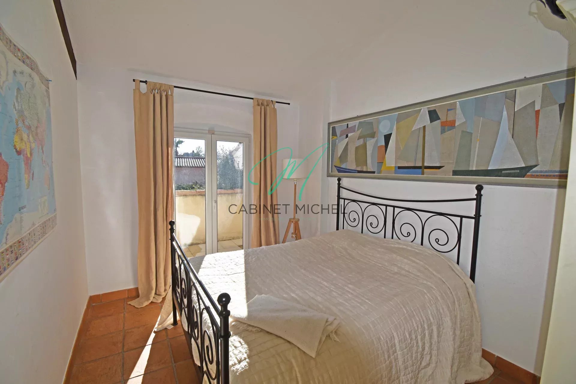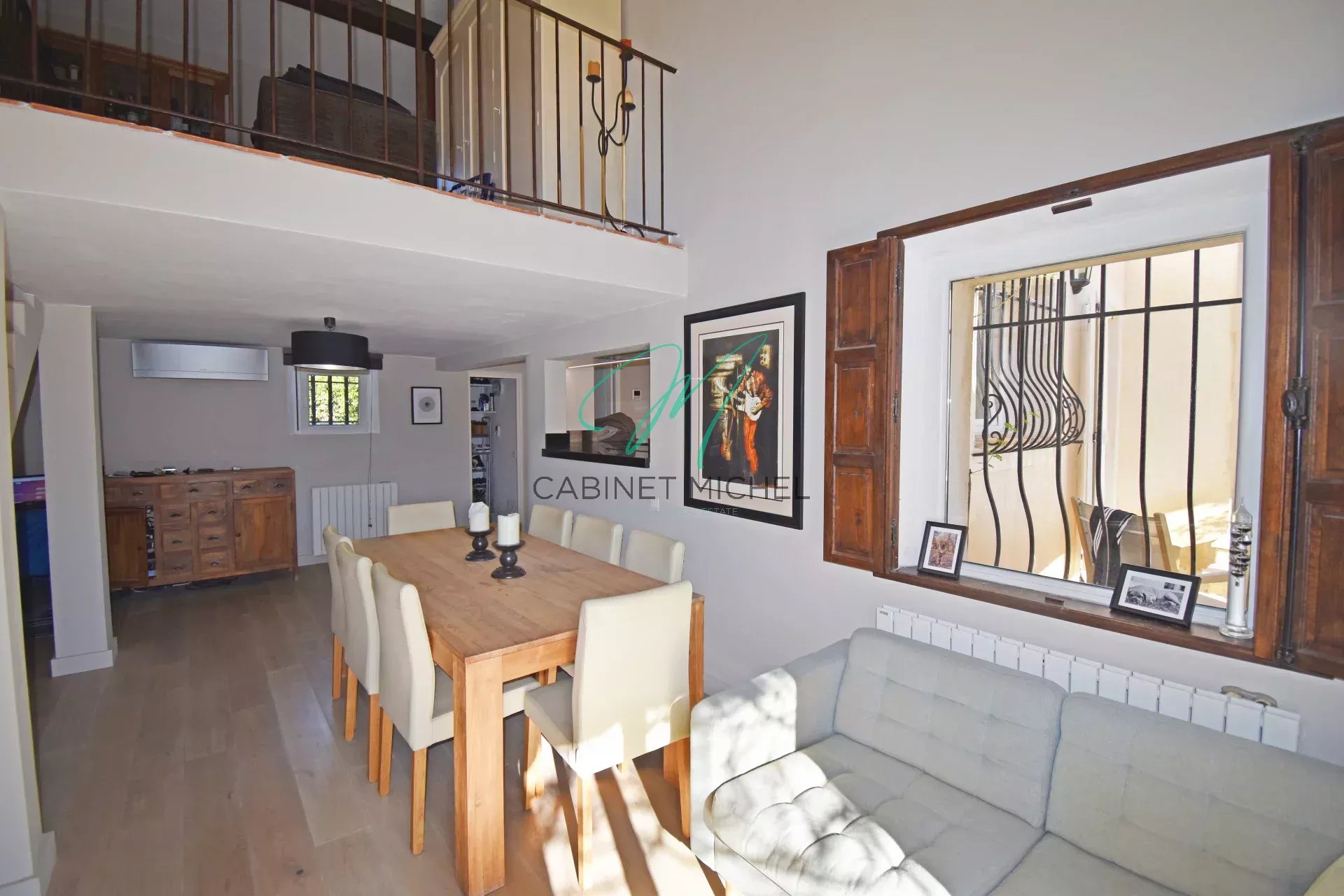 A l'étage: un bureau en mezzanine desservant une chambre, une salle de douches avec wc ainsi qu'un dressing.