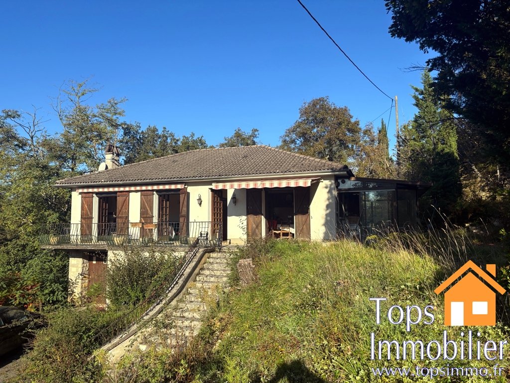 À Toulonjac, à seulement quelques minutes de Villefranche-de-Rouergue, découvrez cette maison de plain-pied des années 80 d'environ 90 m², située dans un environnement verdoyant. Elle se compose de trois belles chambres, d'une salle de bains, de WC séparés, d'un salon/salle à manger lumineux ainsi que d'une cuisine indépendante. Une grande véranda de 40 m² vient compléter l'ensemble et offre un bel espace de vie supplémentaire. La maison est implantée sur un magnifique terrain arboré de plus de 5 000 m², entièrement clos. Le sous-sol complet comprend un grand garage pouvant accueillir deux voitures, une cave, un cellier et une grande buanderie. Un cabanon se trouve à l'arrière de la maison, ainsi qu'une jolie borie située sur les hauteurs du terrain. La toiture et le bâti sont en très bon état. La maison dispose d'une cheminée avec insert, d'une pompe à chaleur air/air ainsi que d'un chauffage électrique. L'ensemble est sain et bien entretenu, nécessitant simplement une remise au goût du jour
