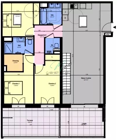 Idéalement situé, face au Golf et à quelques minutes des commerces, dans une magnifique résidence en cours de construction avec piscine, au 1er étage, appartement en duplex de type 5 pièces de 125.93 m² se composant d'un séjour/salle à manger avec cuisine ouverte donnant sur une loggia d'environ 13 m², un dégagement desservant 3 chambres dont 2 dont 2 donnant sur terrasse commune, une salle de douches avec wc, une salle de bains, un dressing et un wc indépendant. Au 1er étage, une mezzanine et une chambre.