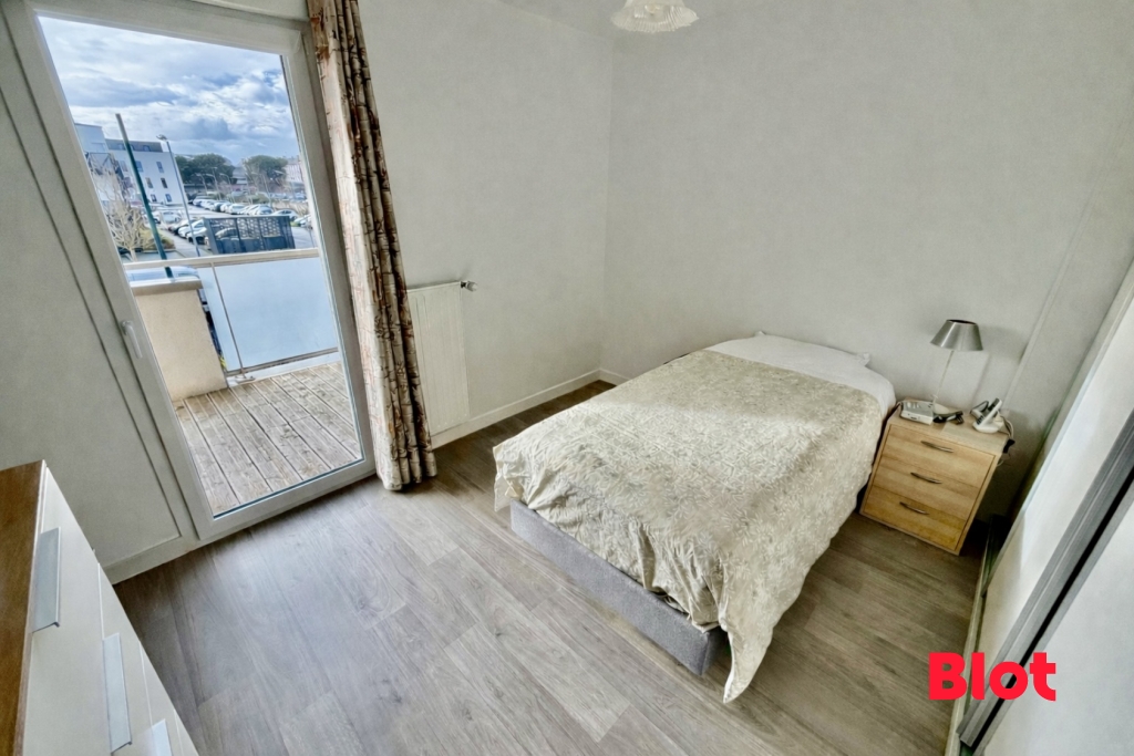 La chambre, dotée d'un placard, donne elle aussi accès à la terrasse. Une salle d'eau et des WC séparés viennent parfaire le confort du logement.