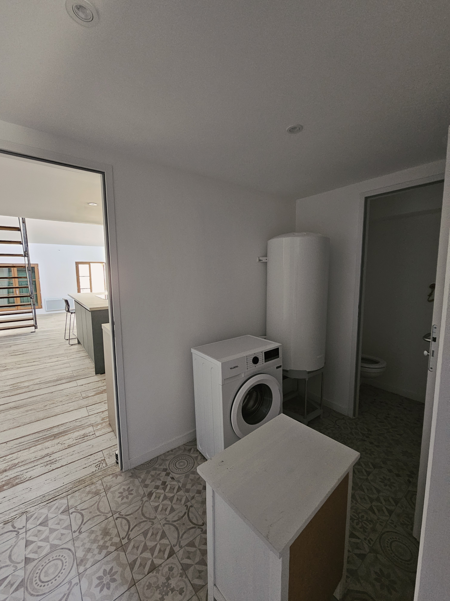 l'Agence Natis Provence immobilier vous propose à l'achat, au coeur du village de Rognes, avec parking à proximité, un appartemement avec terrase au deuxième et dernier étage, dans une maison de Maître totalement rénovée. D'une superficie de 91m2 et de style loft, l'appartement se compose d'une pièce de vie spacieuse et traversante de 50m2 environ, deux wc, une chambre, une salle d'eau, buanderie, à l'étage en mezanine une seconde chambre. Du sejour on accède à une terrasse tropézienne avec vue dominante de 20 m2 environ. Aucun travaux à prévoir, pas d'anomalies électriques, double vitrage, cuisine neuve et de qualité.