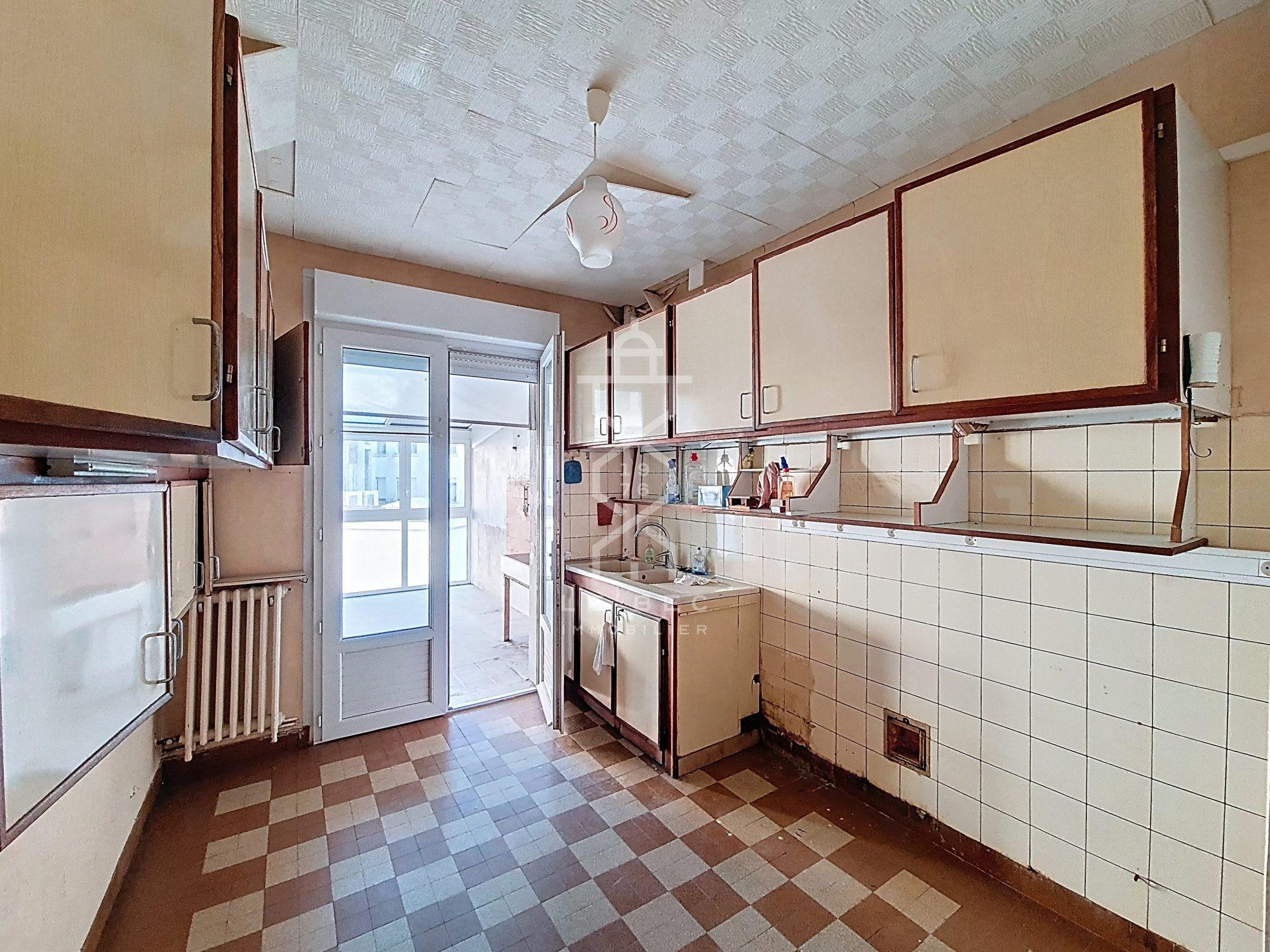 Un appartement T4 à rénover situé au premier étage d'une petite copropriété en plein centre-ville. Il se compose d'une entrée, d'un salon, de deux chambres, d'une cuisine indépendante, d'une salle d'eau et d'une loggia. Une cave est annexée au bien.