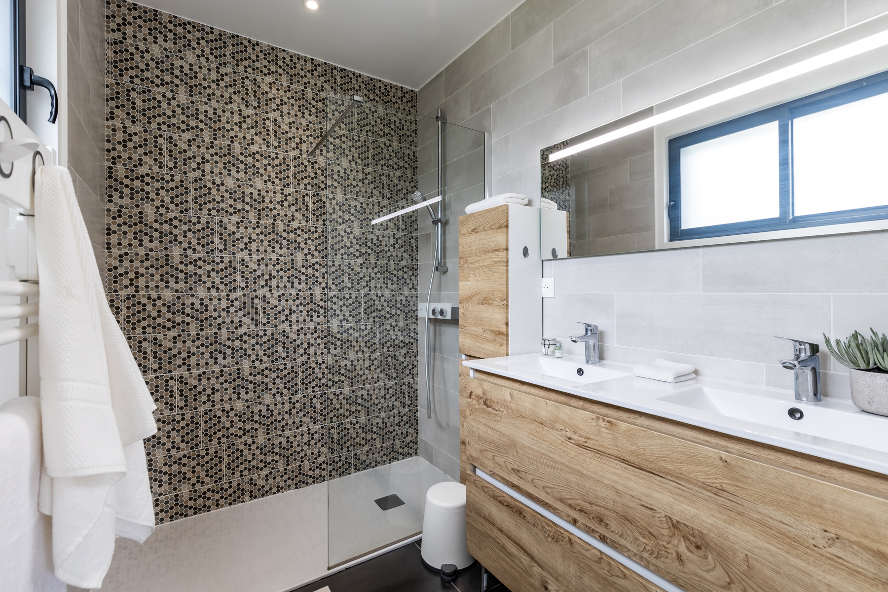 Construite en ossature bois, cette maison bénéficie d'une excellente isolation et d'un confort thermique optimal, alliant performance énergétique et design contemporain.