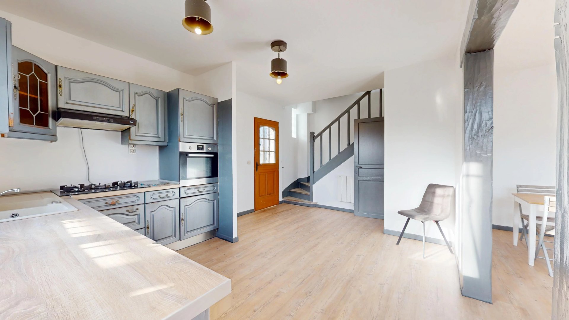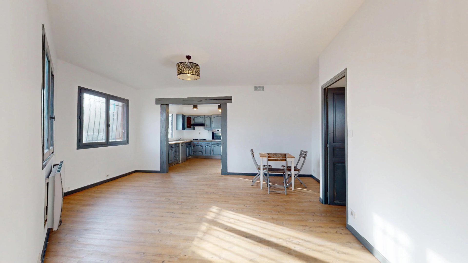 Dès l’entrée, vous découvrirez un vaste espace d’accueil d’environ 7 m² ouvrant sur une cuisine meublée et équipée de plus de 10 m² prolongée par un séjour lumineux de plus de 20 m² grâce à de larges ouvertures sur toute la façade.
