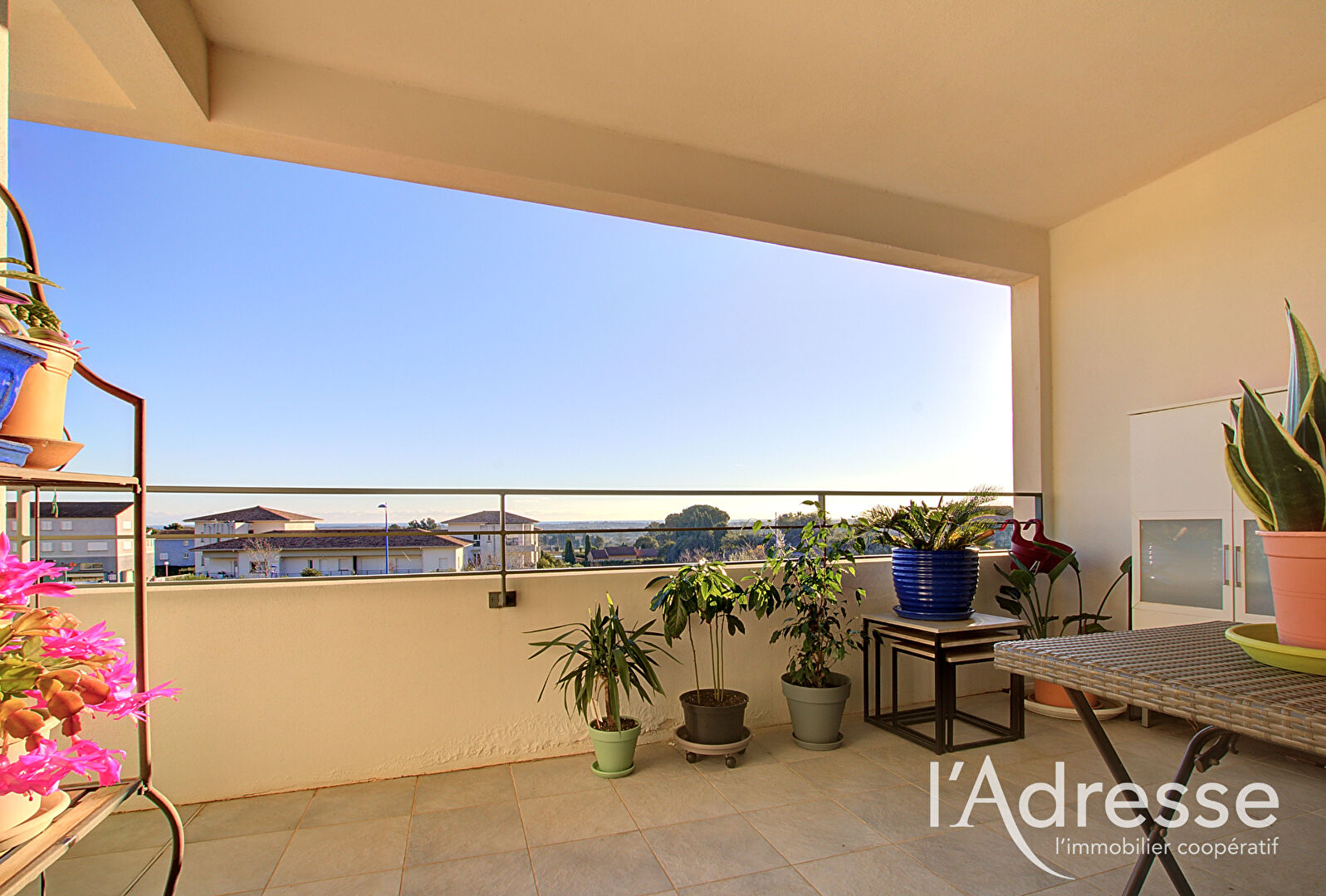 Il se compose d'une entrée avec rangement, d'un grand séjour à la triple exposition ouvert sur la terrasse, d'une cuisine aménagée et équipée avec accès à une seconde terrasse, de deux belles chambres avec vue dégagée, d'une salle d'eau avec fenêtre et d'un wc indépendant.