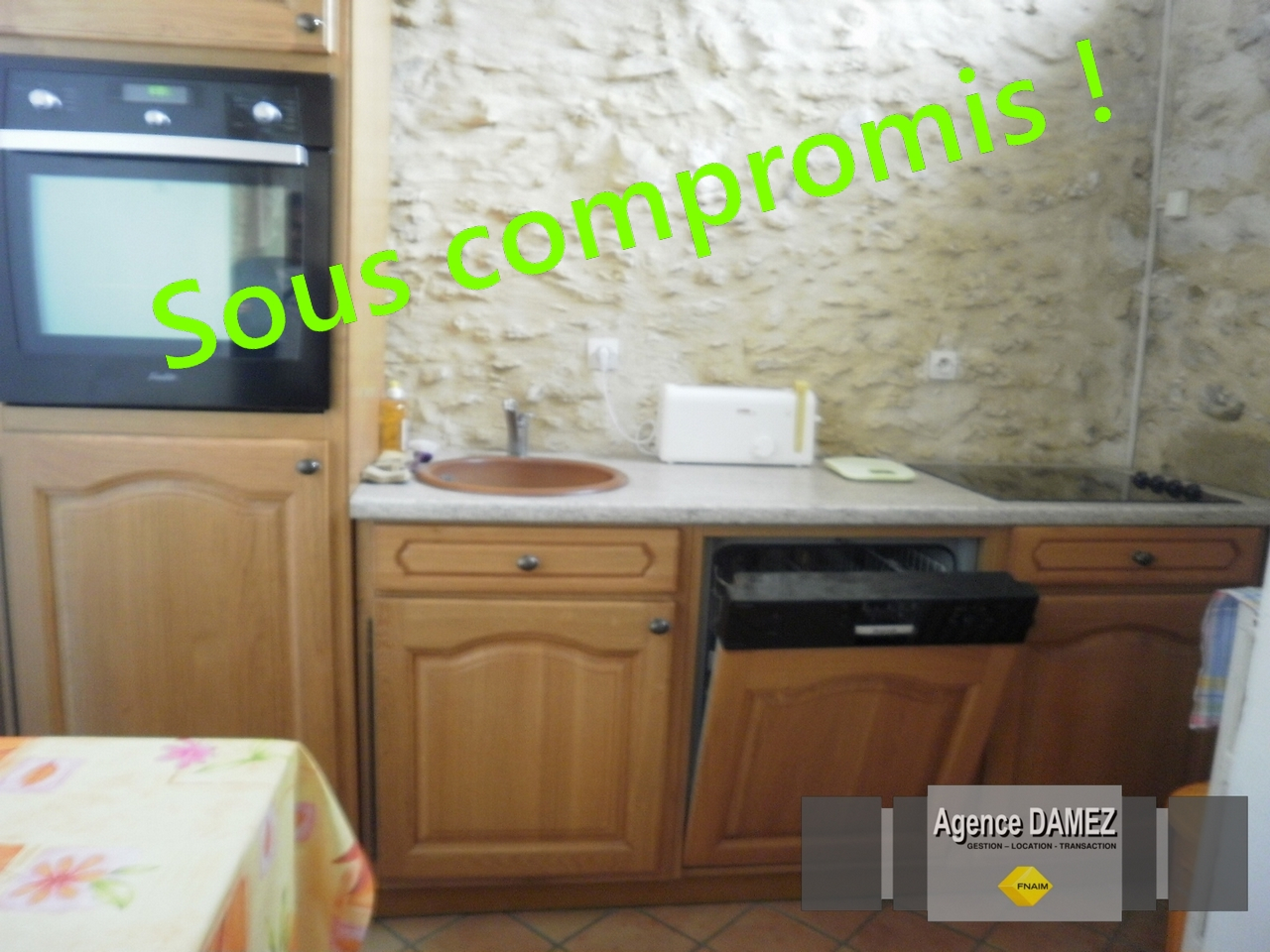 L'entrée vous accueille et dessert un séjour avec pierres apparentes et boiseries, une cuisine aménagée indépendante, deux chambres, une salle de bains et des toilettes.