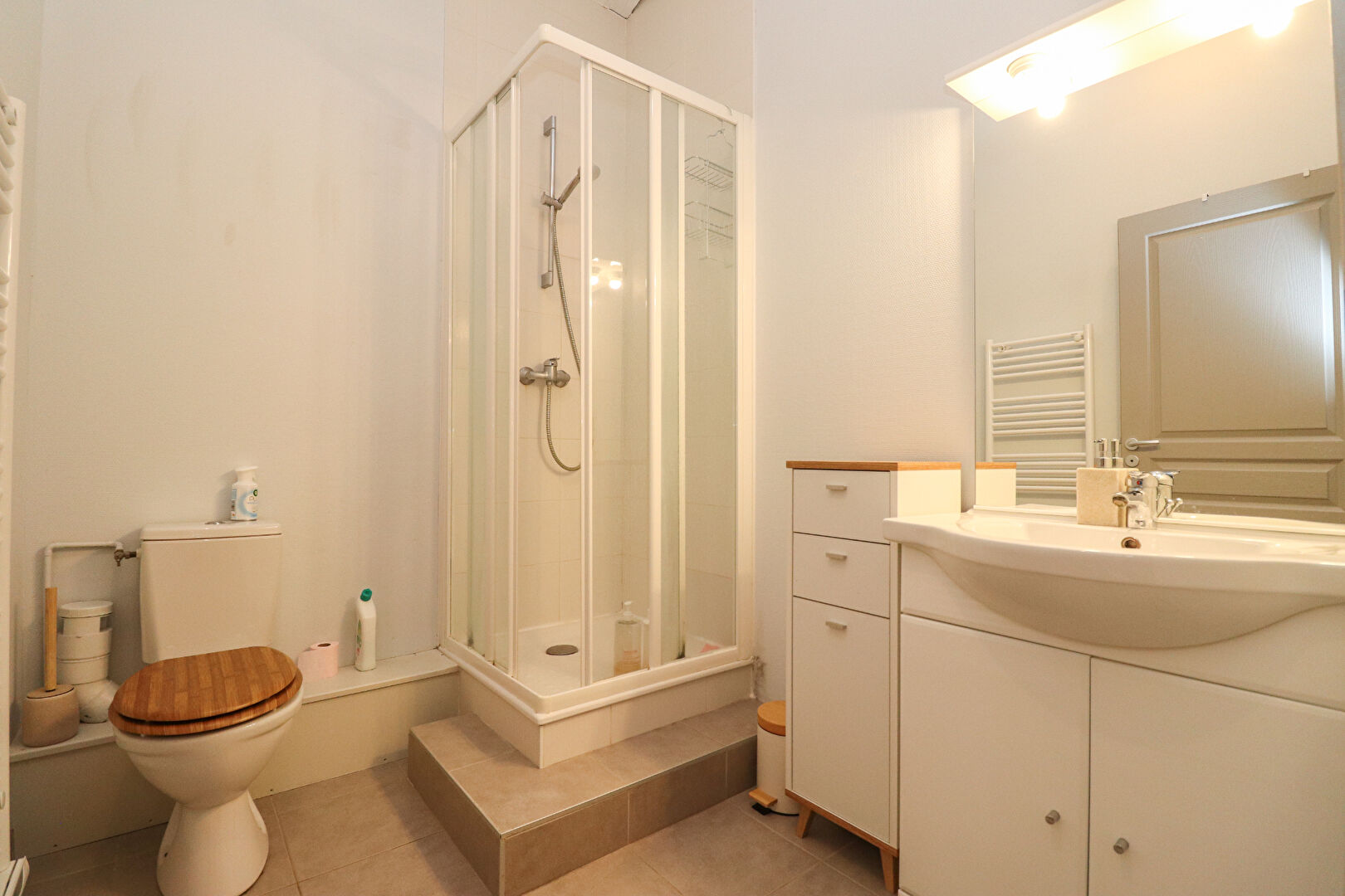 L'appartement est en bon état général, tant à l'intérieur qu'à l'extérieur, avec des menuiseries bois double vitrage et un système de chauffage individuel électrique.