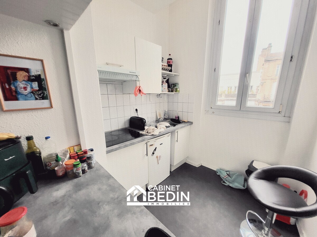 Exclusivité CABINET BEDIN - STUDIO LOUE AVEC TERRASSE BARRIERE SAINT GENES . Emplacement stratégique - barrière Saint Genès - pour ce T1 au dernier étage d'un petit immeuble.