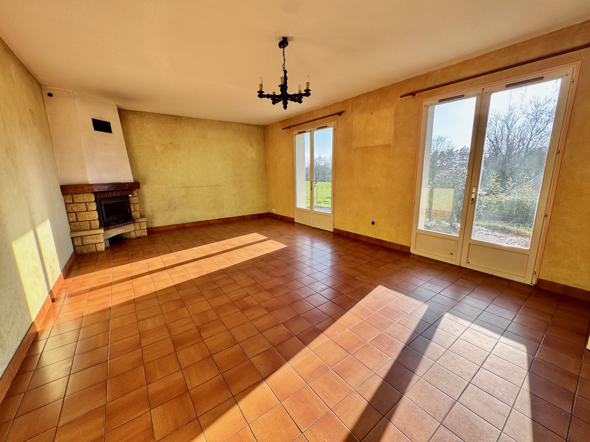 Située à quelques kilomètres du bourg, cette maison des années 1980 offre un beau potentiel et nécessite des travaux de rénovation.