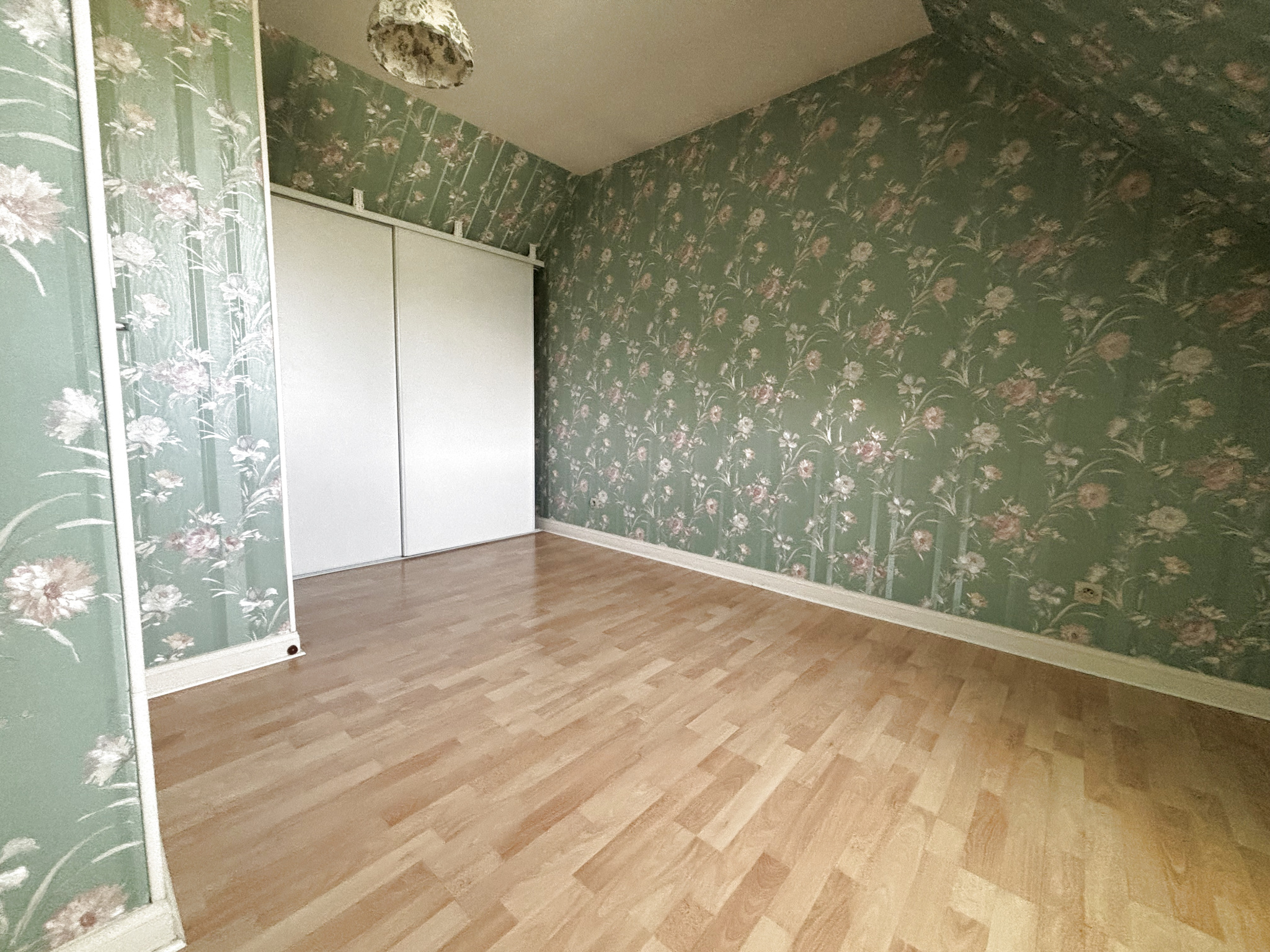À l'étage, un palier dessert deux chambres, dont une disposant de sa propre salle d'eau avec WC.