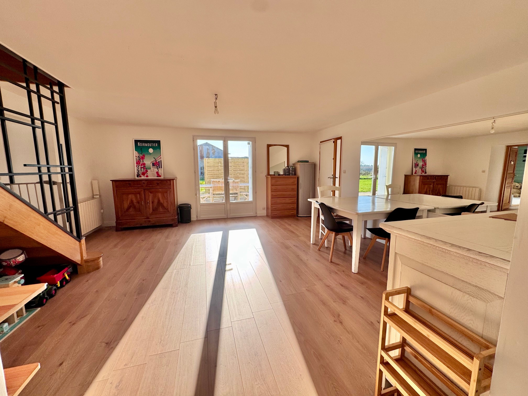 À l'extérieur, vous profiterez d'un grand garage attenant avec atelier de plus de 80 m2, d'une agréable terrasse donnant sur un terrain clos d'environ 1 700 m2, ainsi que d'une dépendance.