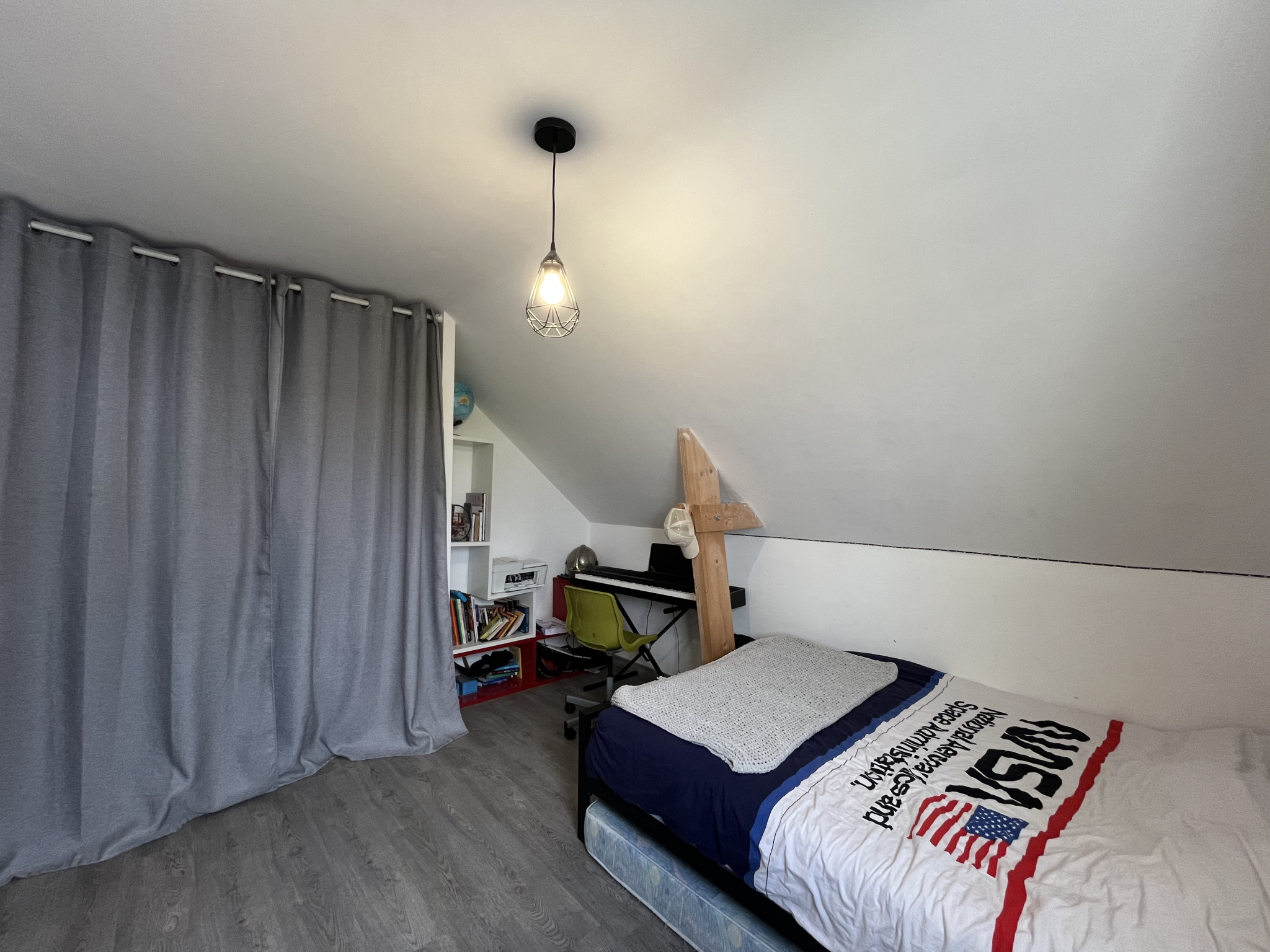 L'espace nuit se poursuit à l'étage, avec trois chambres confortables, chacune disposant de placards intégrés, ainsi qu'une salle de bain familiale avec baignoire, douche et WC, pensée pour le quotidien comme pour les instants de bien-être.