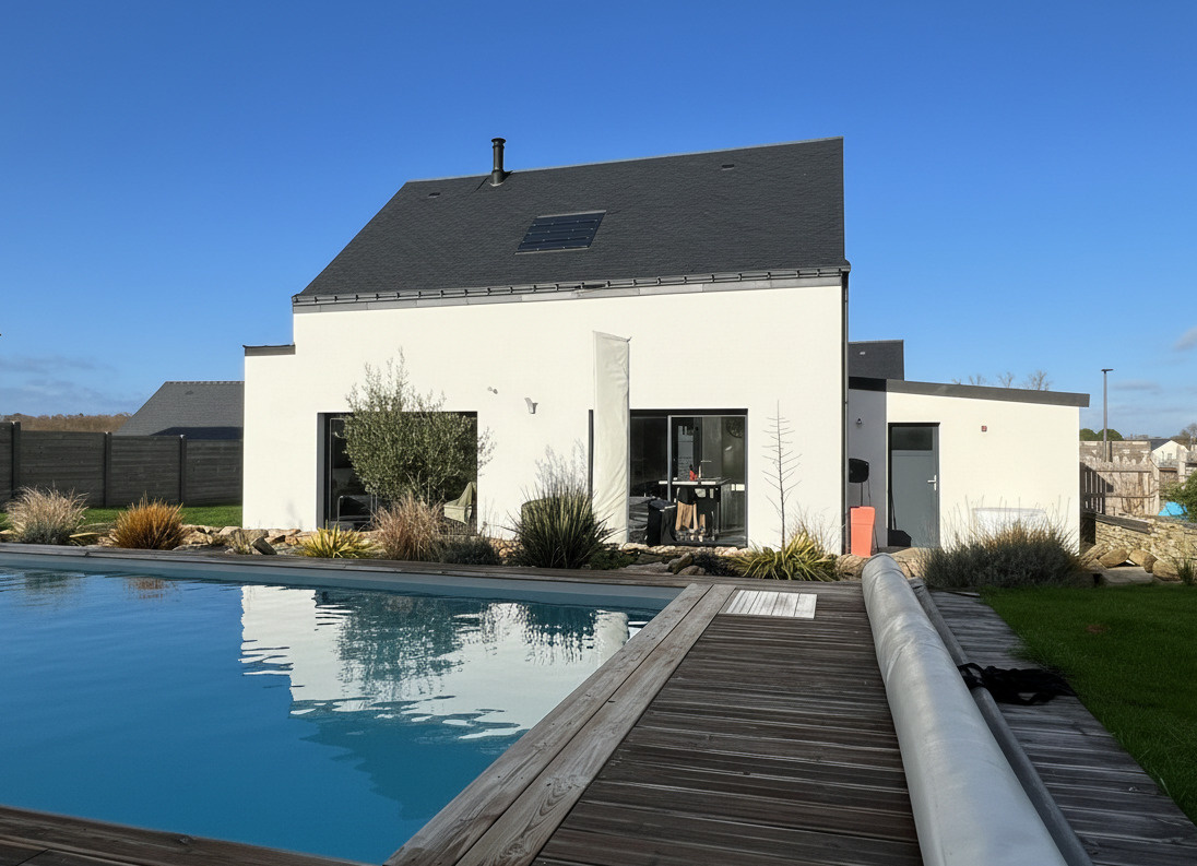 Dès l'entrée, les volumes et la fonctionnalité se révèlent avec une entrée lumineuse, une buanderie et un garage intégrant une cave à vin enterrée, idéale pour les amateurs de moments conviviaux. Le coeur de la maison s'articule autour d'un bel espace de vie d'environ 40 m2, baigné de lumière naturelle grâce à son exposition plein sud ouvrant sur une terrasse bois avec accès direct sur la piscine. Le salon-séjour invite à la détente et au partage, en parfaite continuité avec une cuisine aménagée et équipée au design contemporain, ouvrant sur l'extérieur par de grandes baies.