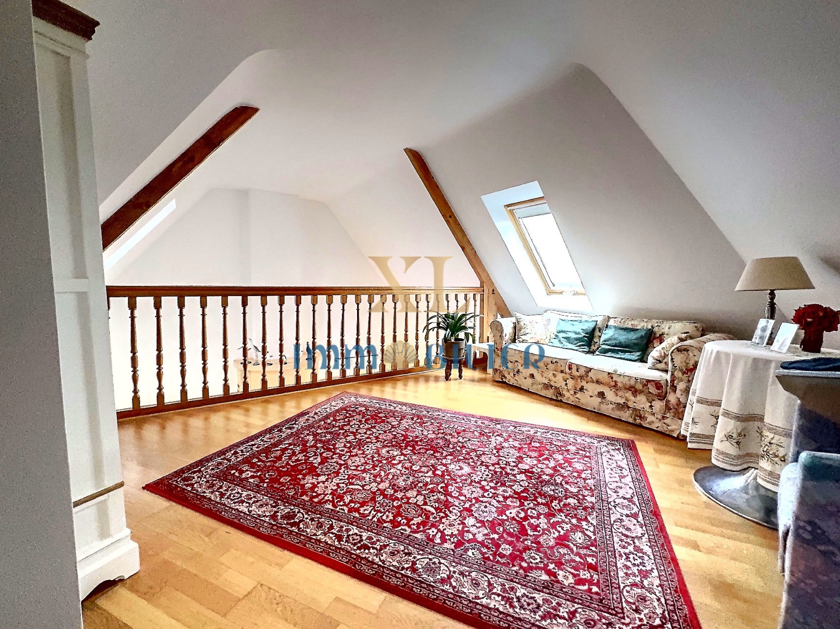 À l'extérieur, le véritable atout : un jardin à l'abri des regards d'environ 640 m2, Terrasse, abri de jardin, garage avec mezzanine de stockage et plusieurs places de stationnement complètent l'ensemble.