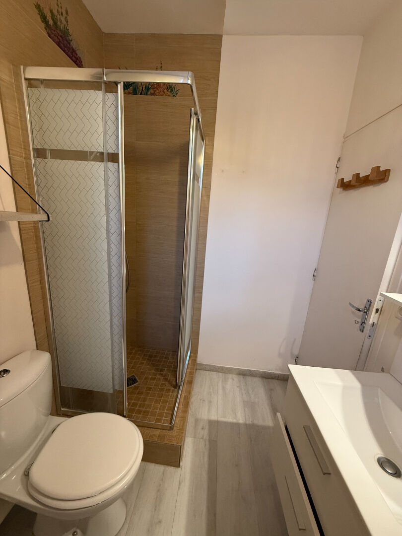L'espace nuit se compose d'une chambre d'environ 10 m² avec rangements, ainsi que d'une salle de douche avec WC, pratique et bien agencée.
