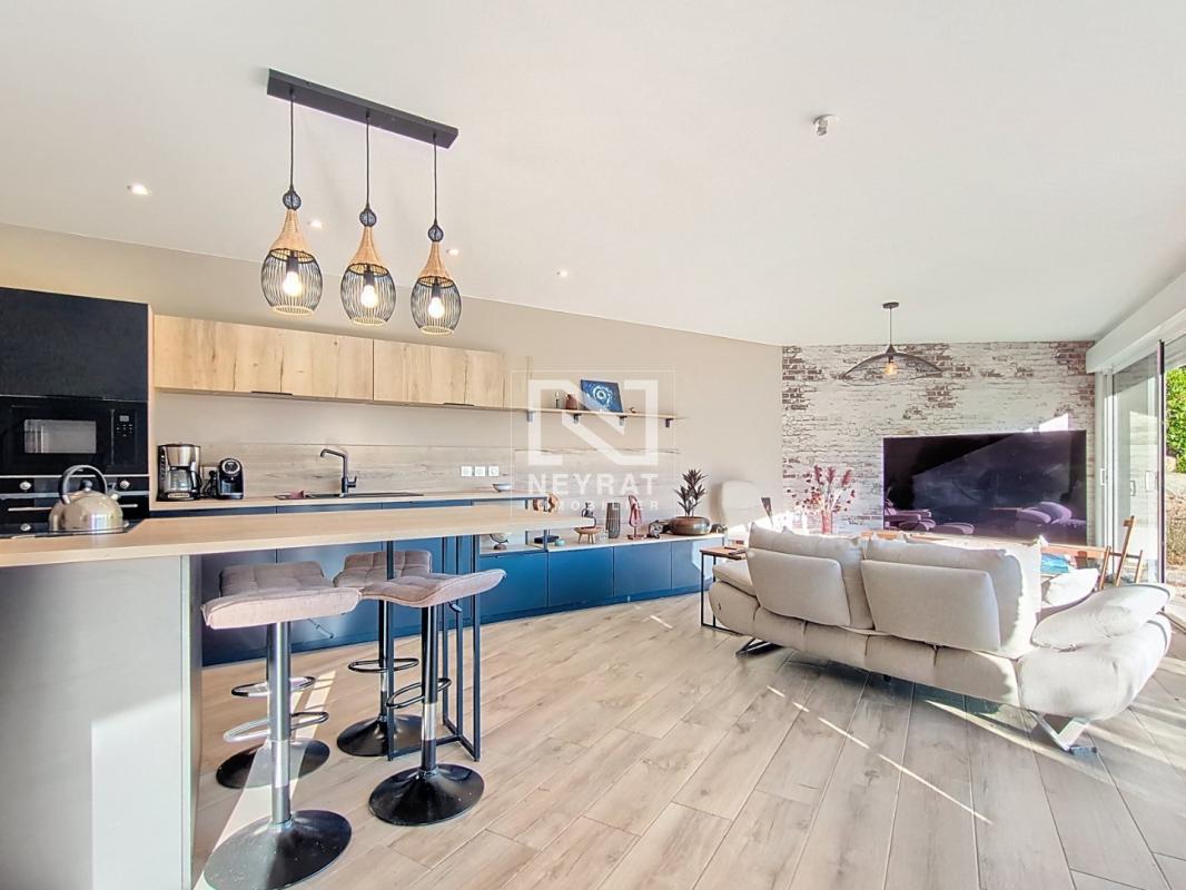 Cette maison moderne offre de beaux volumes, un salon-séjour lumineux avec poêle à bois et cuisine équipée, une suite parentale avec salle d'eau et dressing.