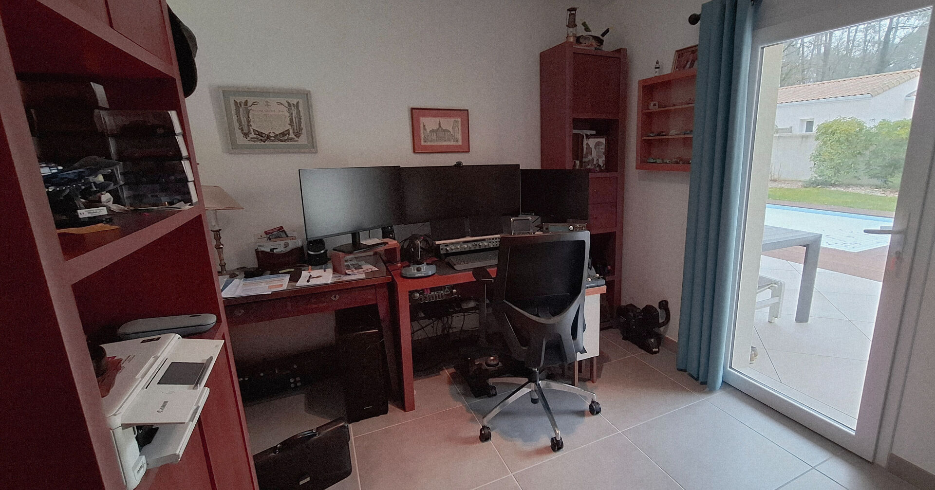Entrée desservant une vaste pièce de vie lumineuse donnant sur terrasse et piscine, une cuisine indépendante par une verrière, aménagée et équipée, cellier, buanderie, 4 chambres dont une suite parentale avec douche et bains, wc séparé, une 2ème salle de douche et bains, wc, bureau, accès direct à la terrasse et piscine.