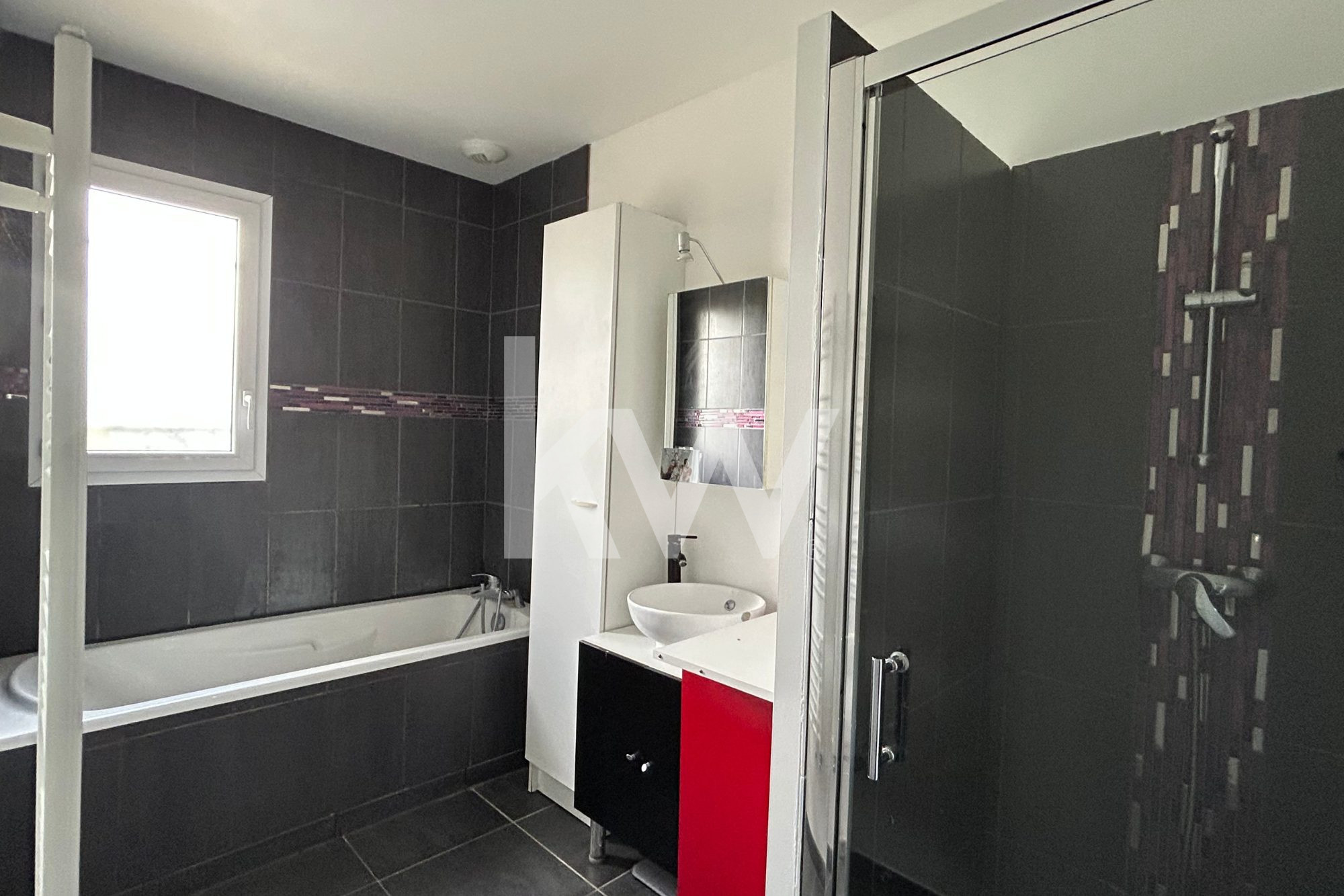 Côté nuit, trois chambres confortables avec dressing permettent à chacun de trouver sa place. La salle de bains, à la fois pratique et agréable, dispose d'une douche et d'une baignoire. Un cellier complète l'ensemble, intégrant la chaudière et le ballon thermodynamique pour un confort thermique maîtrisé et des consommations optimisées.