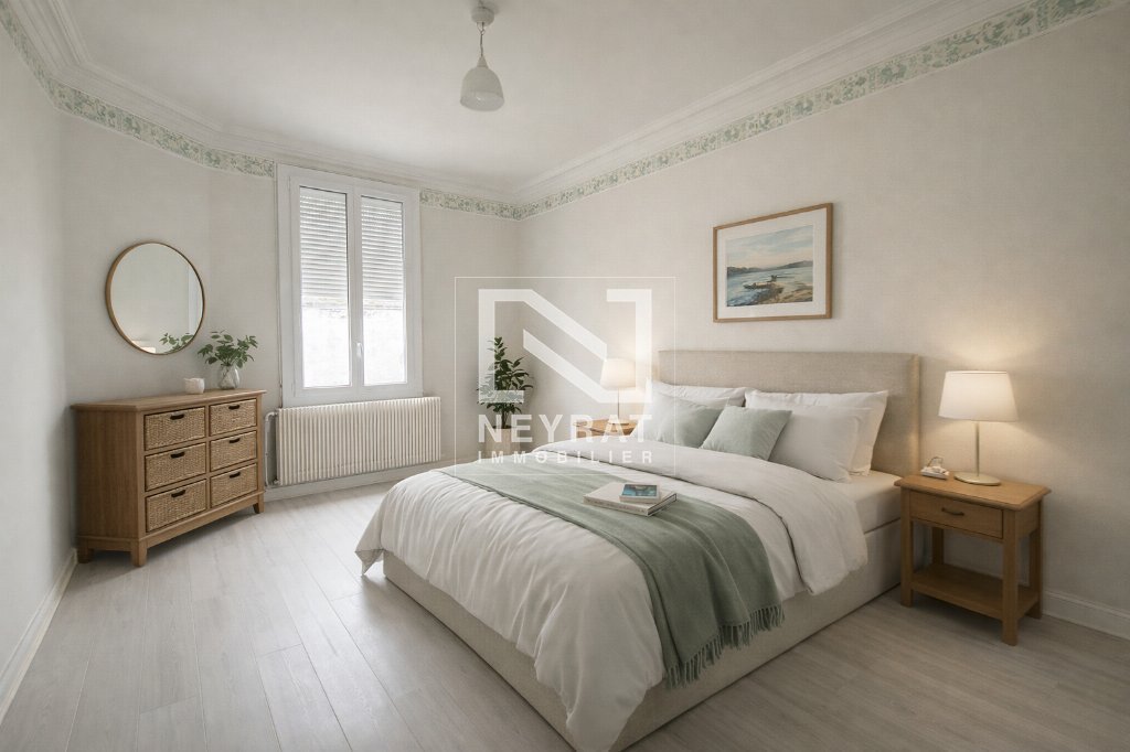 Maison mitoyenne élevée sur sous-sol, à rafraîchir, offrant un agencement fonctionnel et de belles possibilités d'aménagement. Elle se compose d'une entrée accueillante desservant une cuisine séparée, un salon/séjour lumineux et deux chambres. La salle d'eau avec WC complète le niveau de vie principal, présentant une distribution simple et pratique à personnaliser selon vos goûts.