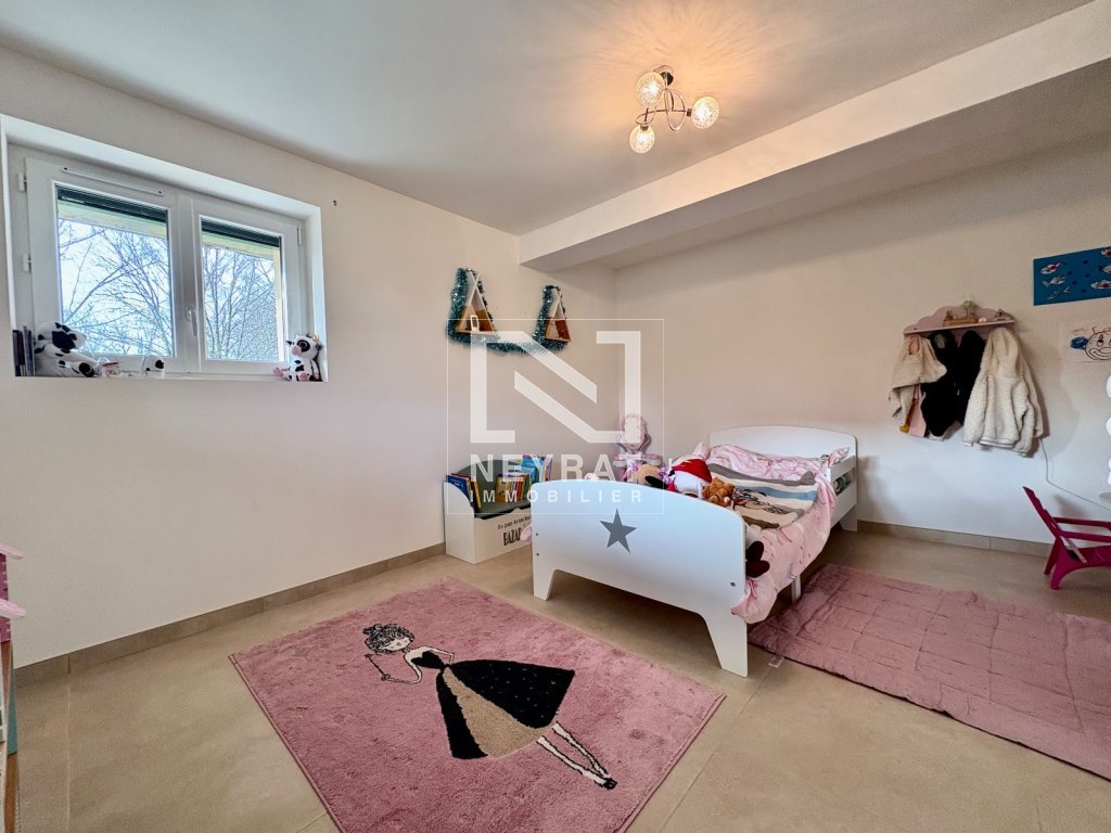 L'extérieur est un véritable atout : le jardin d'environ 930 m², facile d'entretien, offre suffisamment d'espace pour un potager, des jeux pour enfants ou une terrasse ensoleillée. Un garage extérieur complète le bien et apporte une solution pratique pour le stationnement ou le stockage.