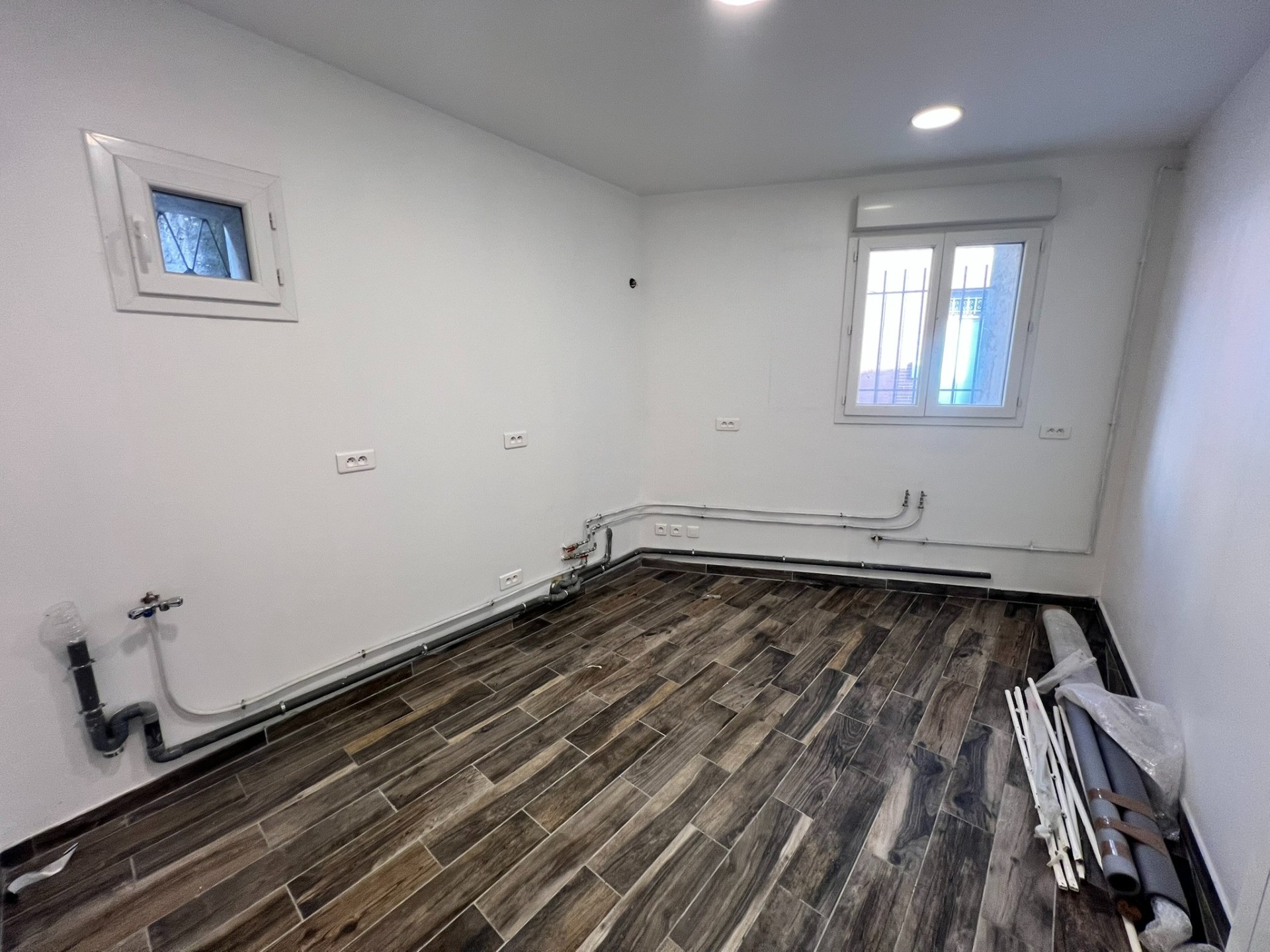 Elle se compose au rez de chaussée d'une pièce principale donnant sur cour intérieur avec rangement, une cuisine non aménagée et accès garage.