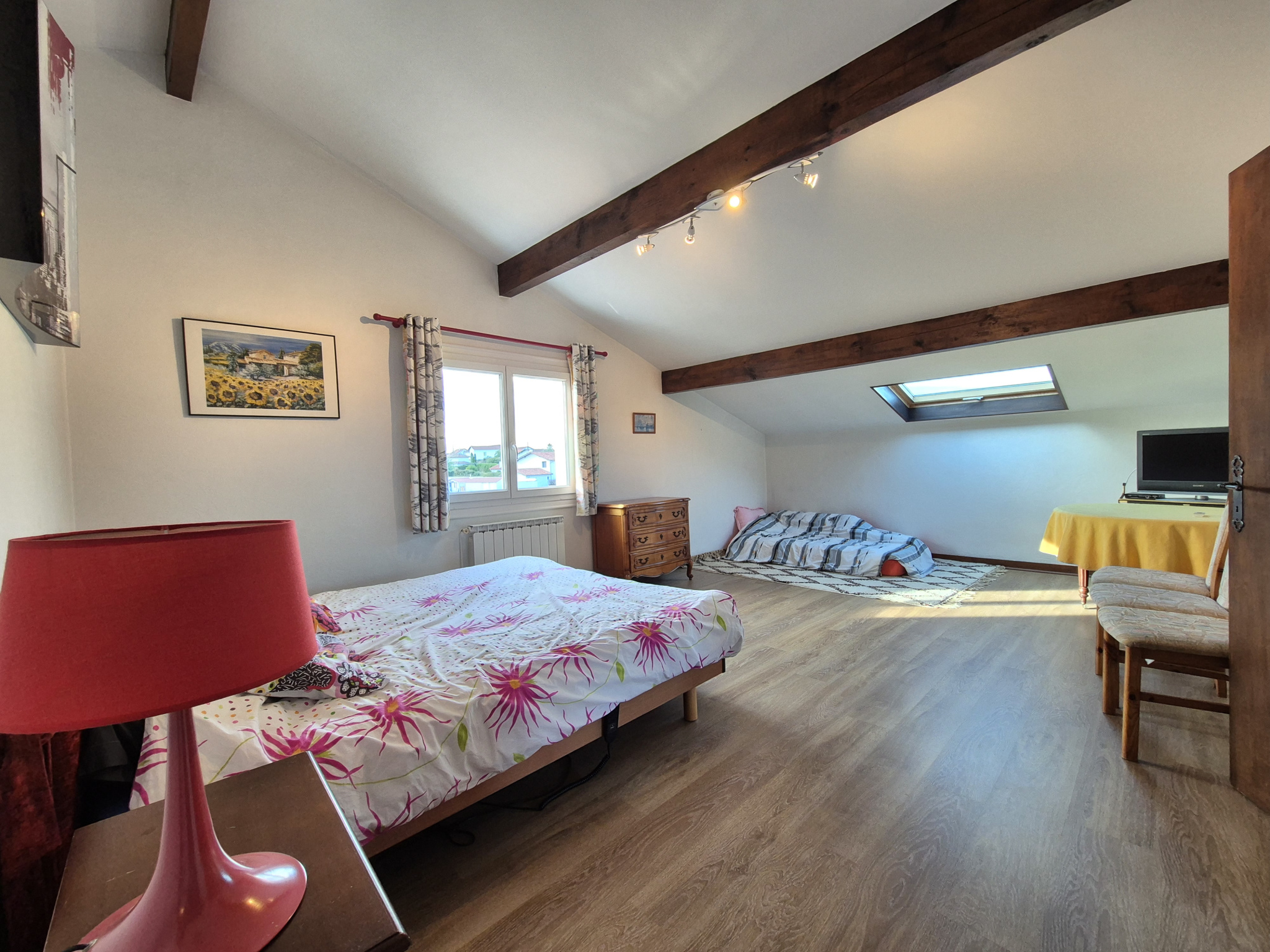 Le 1 er étage comporte deux grandes chambres (16 et 25 m2), un espace bureau et rangement et une salle d'eau avec wc.