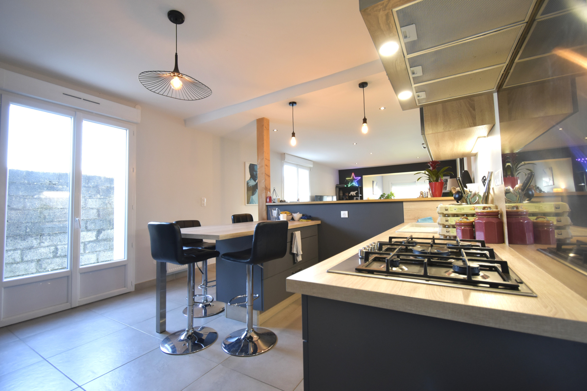 11618 - EXCLUSIVITE GEVREY CHAMBERTIN Produit rare. Idéalement située, maison familiale avec extension d'environ 182 m2 au sol entièrement rénovée avec matériaux de qualités composée ; entrée avec placards, belle et lumineuse pièce de vie comprenant une cuisine entièrement aménagée et équipée ouverte sur le salon/séjour, salle à manger donnant sur une grande terrasse avec sa pergola bois, dégagement, 2 chambres, salle de bain, toilettes avec lave mains. A l'étage, dégagement, 3 chambres spacieuses avec placards de rangements, dressing, salle de douches.