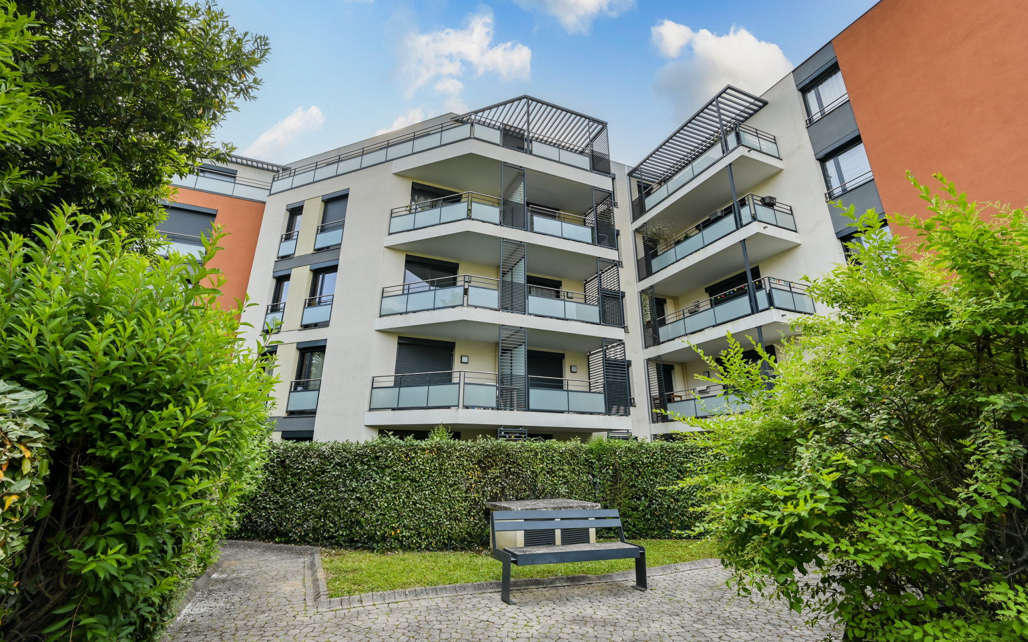 Exclusivité à Tassin la Demi-Lune. Dans une résidence récente, au calme charmant 3 pièces de 68 m2 en dernier étage avec une belle vue dégagée. Un séjour carrelé avec une cuisine USA ouvre sur une grande terrasse de 21 m2 exposée à l'Ouest. Deux chambres en parquet avec placard de rangement, une salle de bains spacieuse et un toilette séparé. Vous serez séduit par cet environnement verdoyant avec l'ensemble des commodités à proximité. Deux garages fermés en sous-sol complètent cet appartement en bon état. Local à vélos.