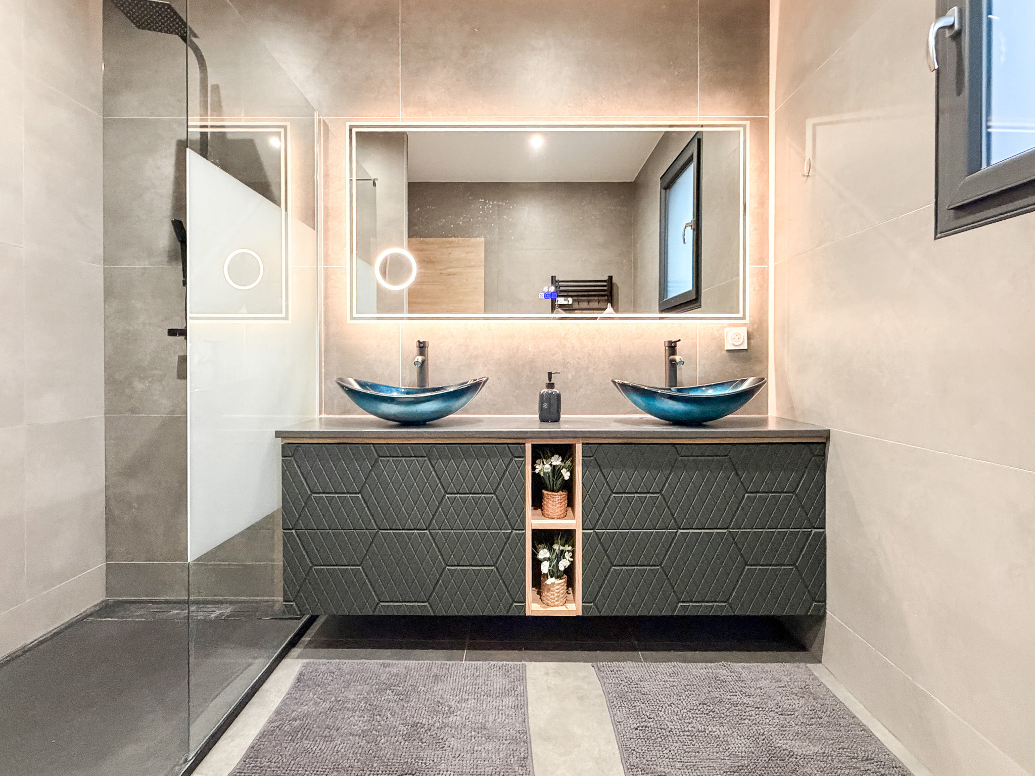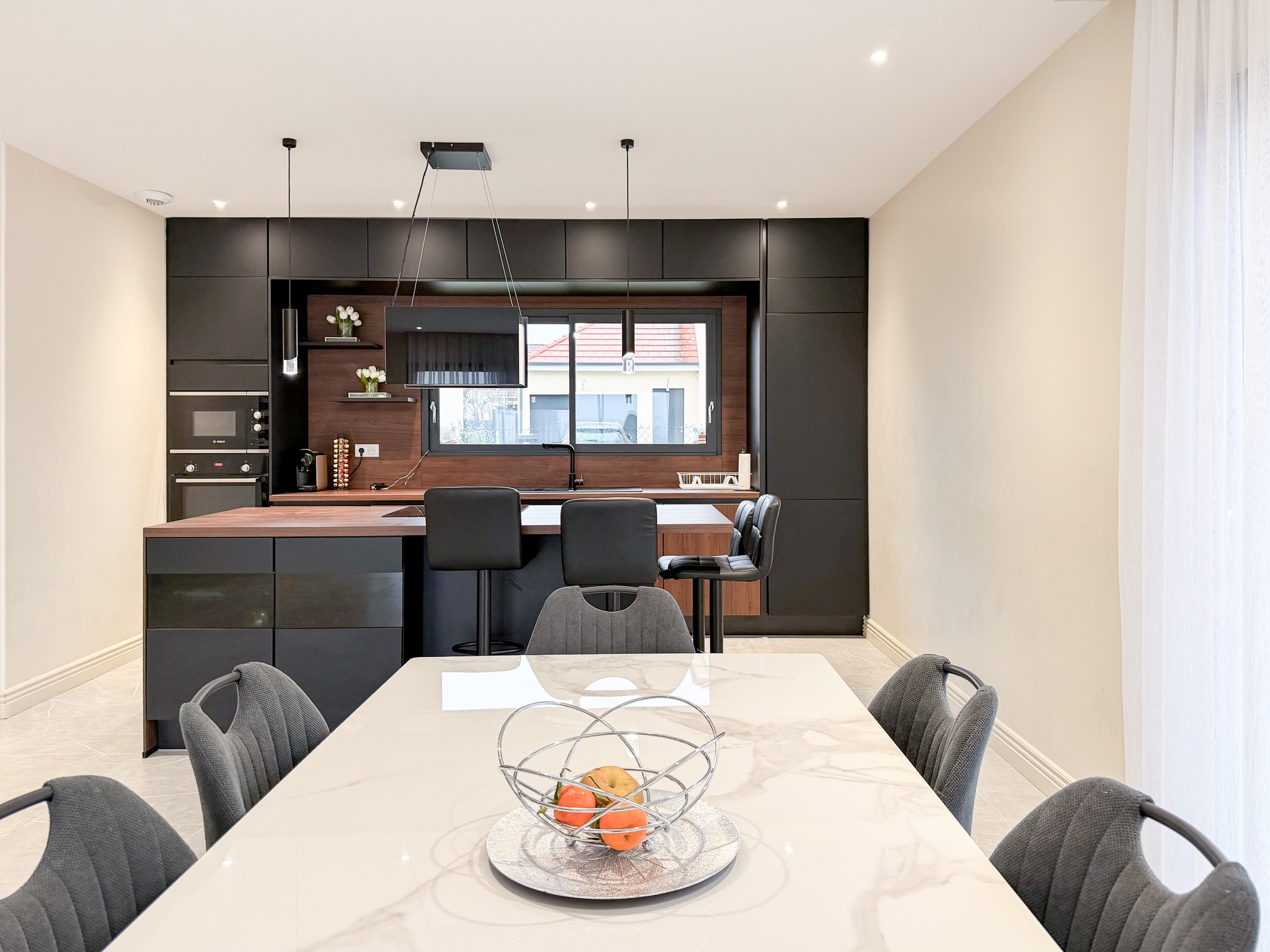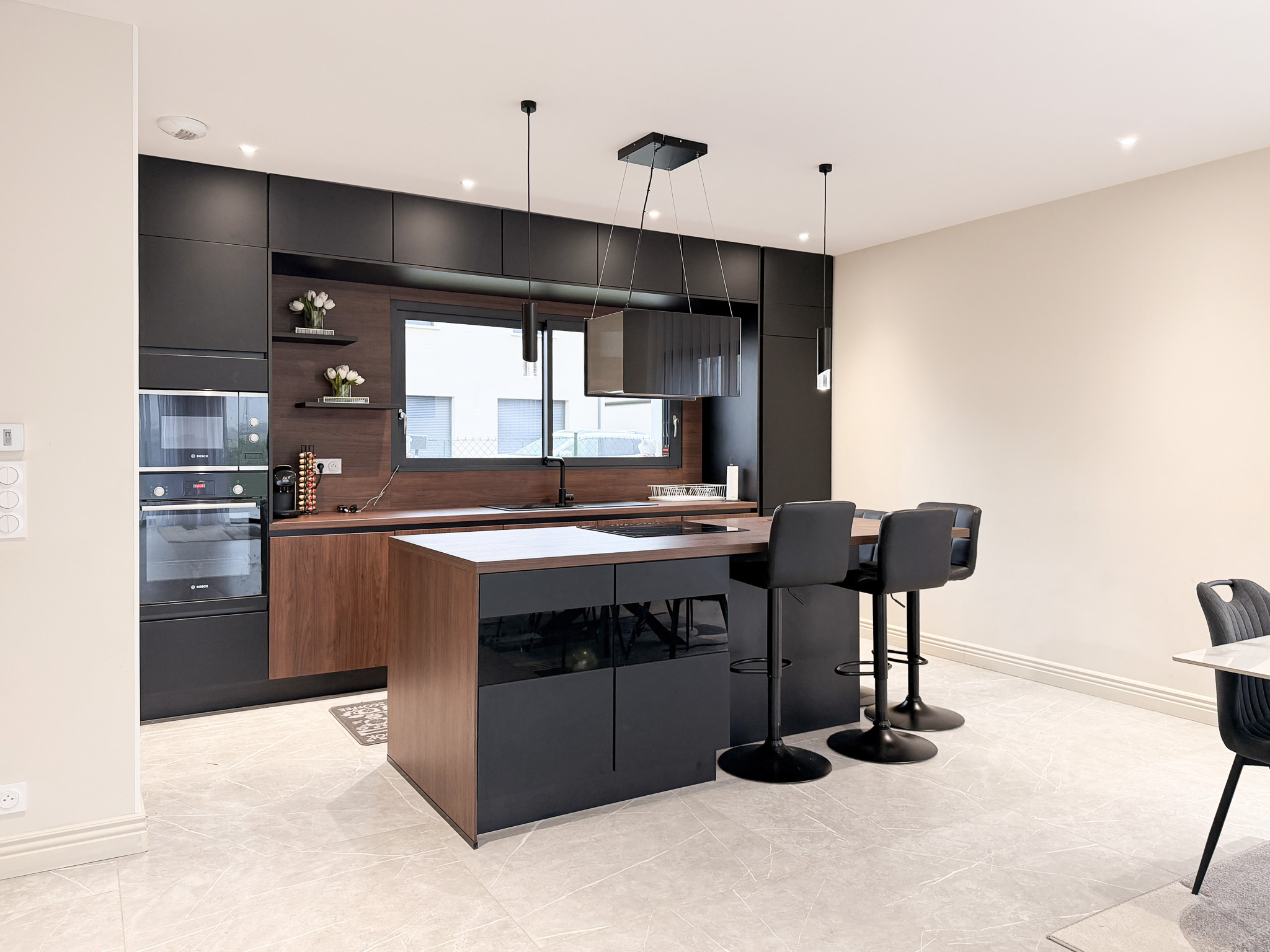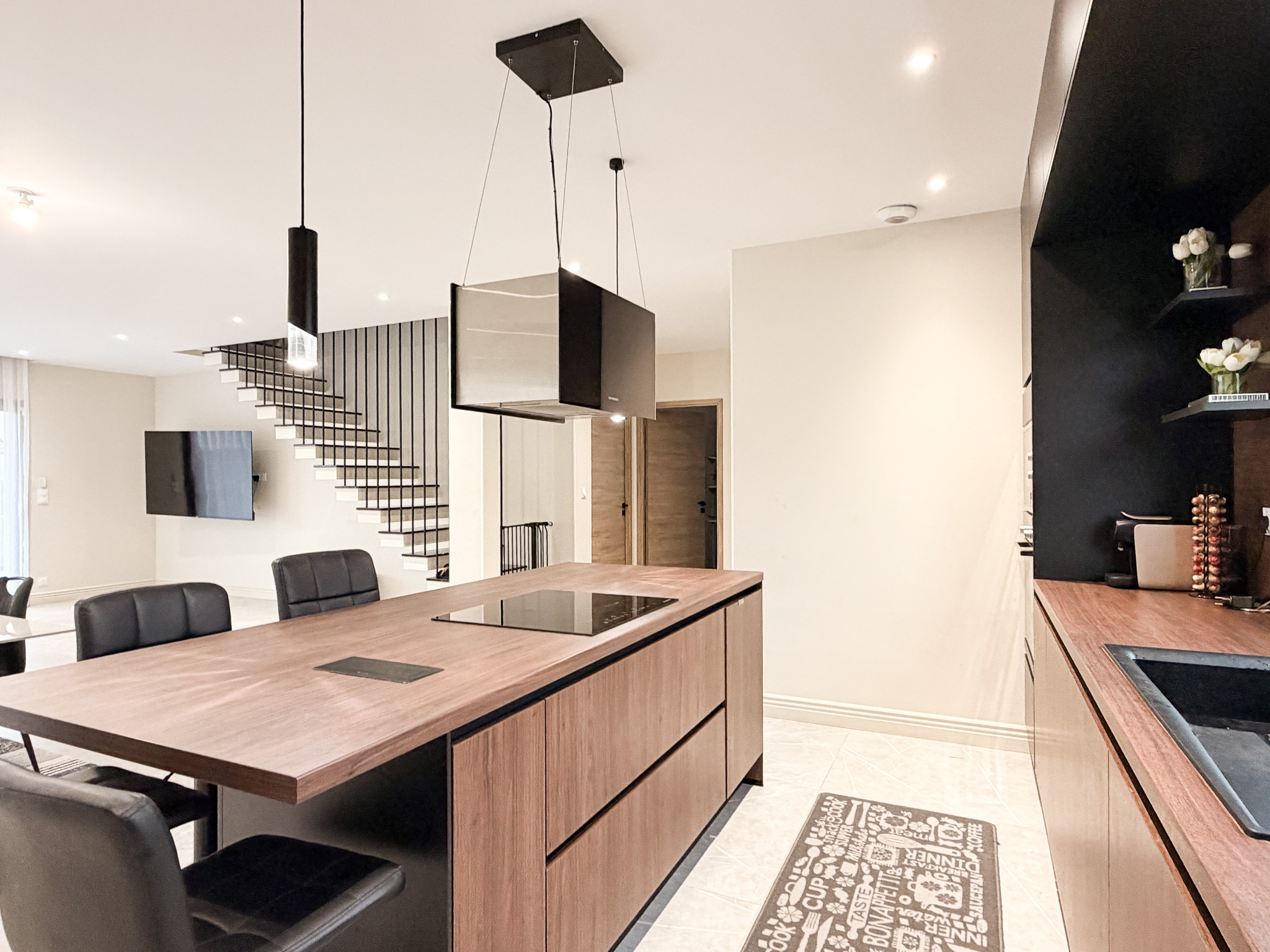 Quatre chambres , trois salles de bains et garage double.