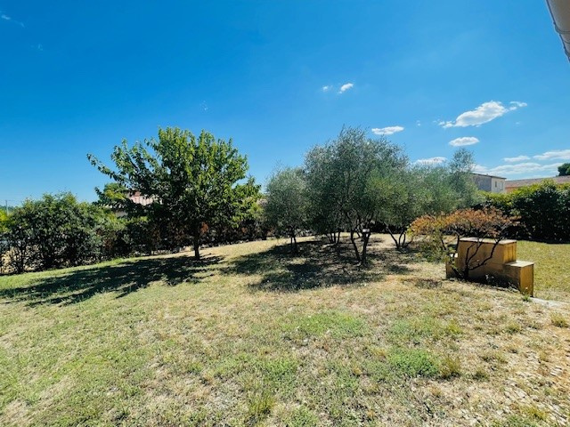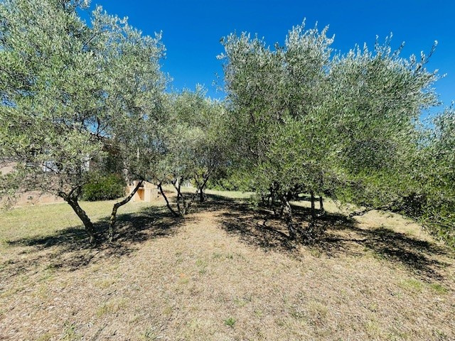 Terrain clos et arboré d'oliviers.