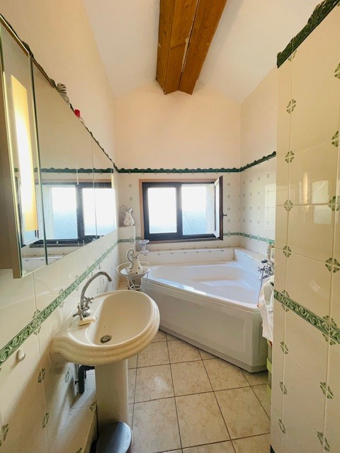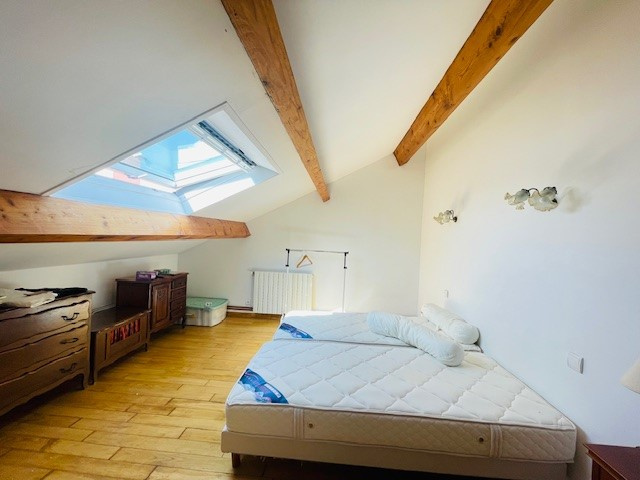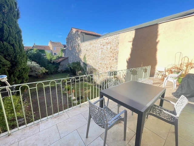 Au 1er étage : hall d'entrée, séjour, salon, cuisine, deux chambres, une salle d'eau et wc. Une terrasse de 24 m2 exposée sud avec accès au jardin.