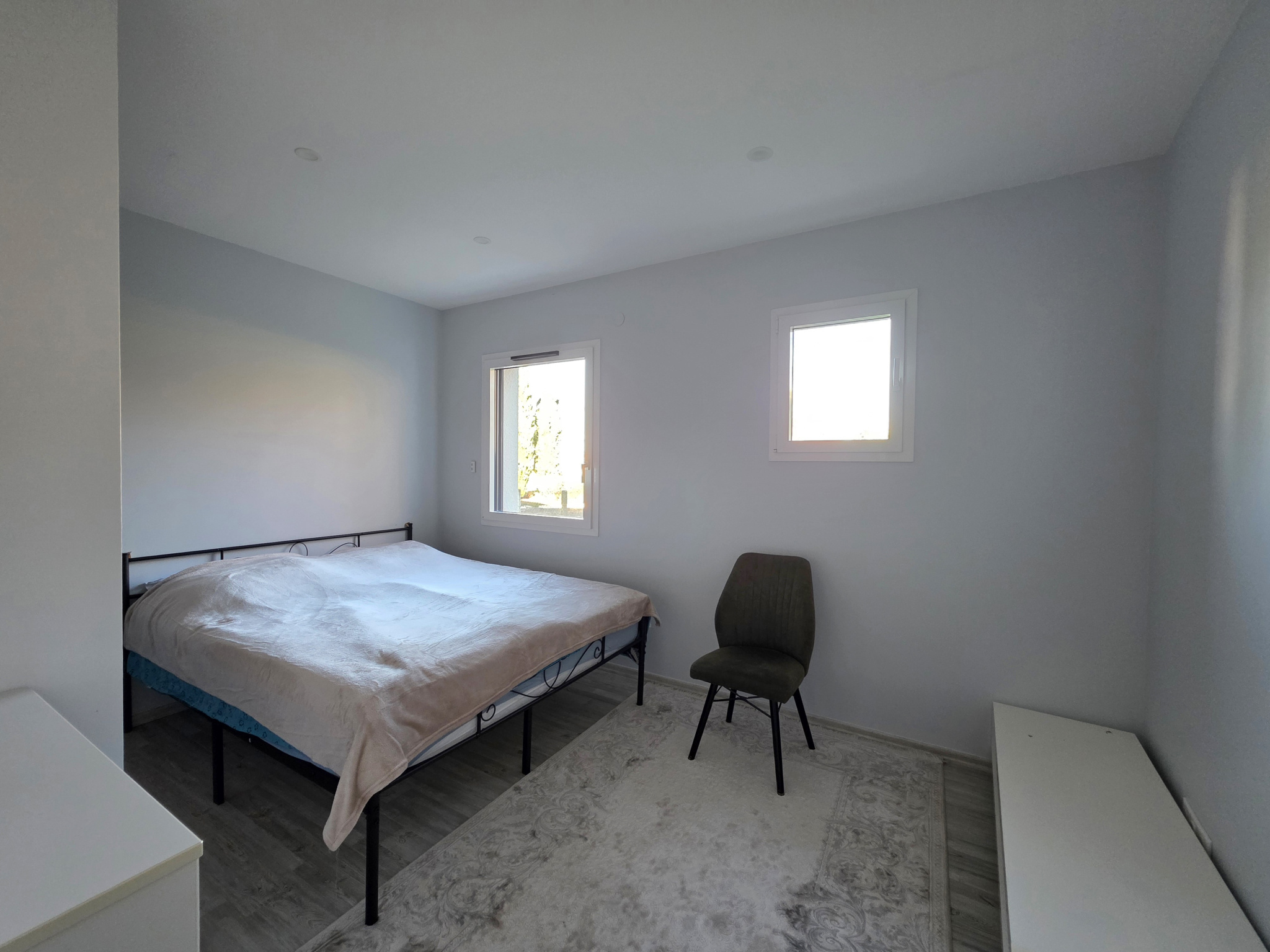 Chauffage individuel au sol par pompe à chaleur, électricité aux normes, double vitrage alu et volets roulants électriques. La maison dispose de deux VMC et de la fibre (normes RT2012).