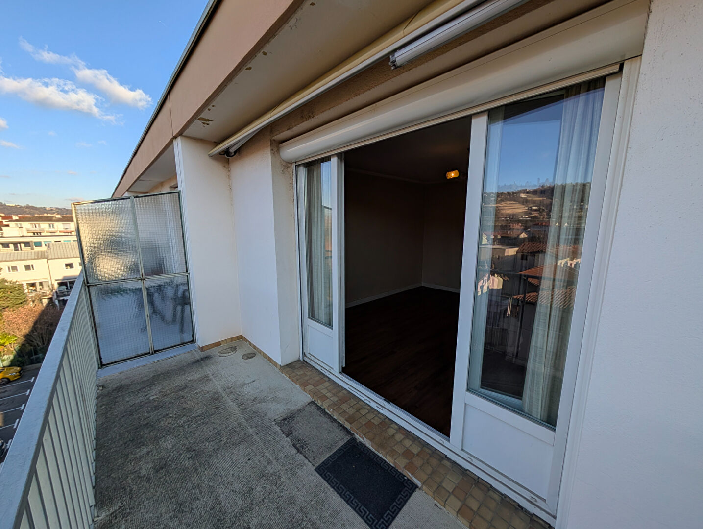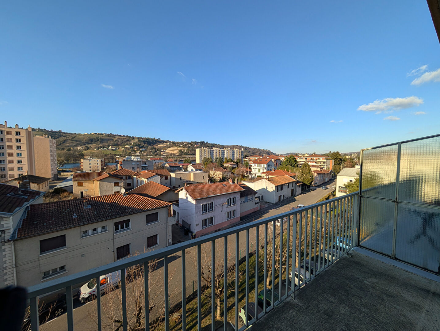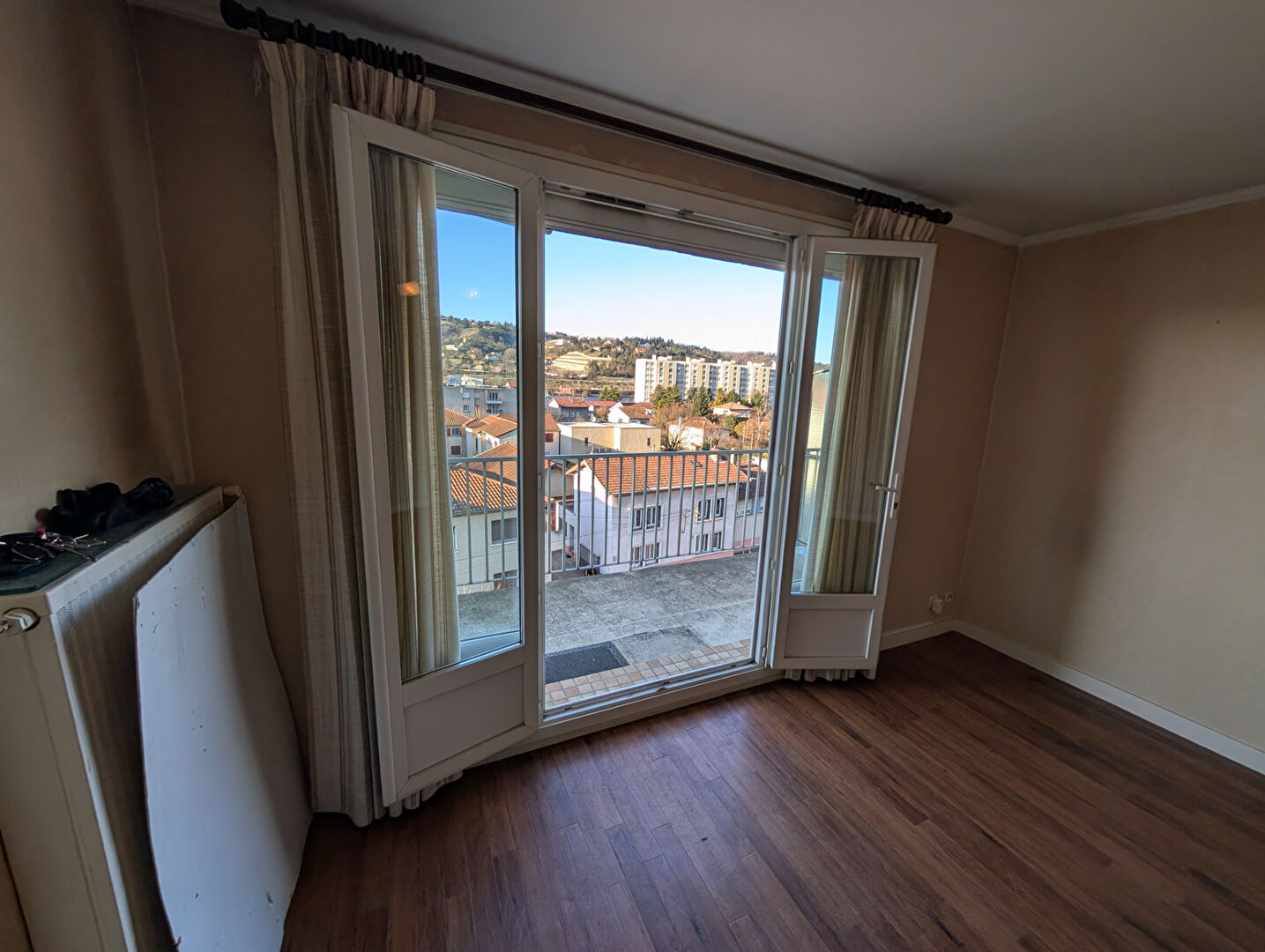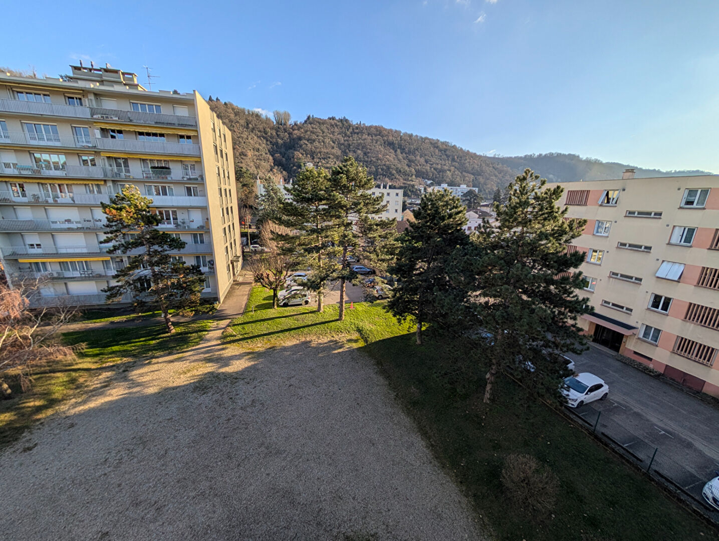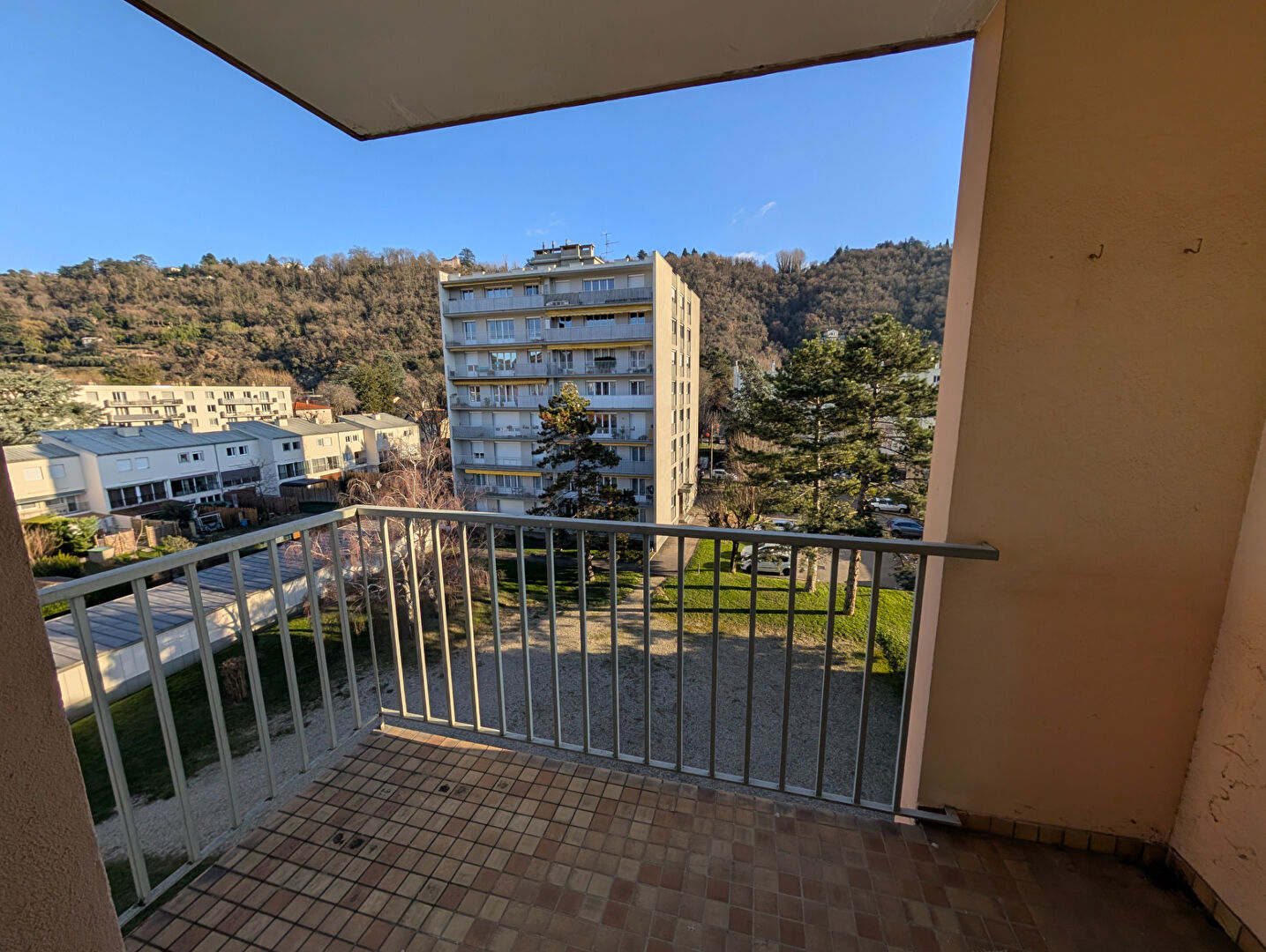 VIENNE sud- 38200 - rue Vimaine - A 3 minutes du bus - Quartier calme et résidentiel - Dans une résidence sécurisée par un portail automatique - Immeubles de 1971 - Au 4ème et dernier étage avec ascenseur - APPARTEMENT T3 lumineux et traversant avec vue dégagée sur la vallée du Rhône et le parc de la résidence - Logement à rafraichir de 64 M² carrez - Salon plein ouest avec porte fenêtre sur agréable balcon - Cuisine de 12 M² au soleil levant - 2 chambres avec placards - Loggia à l'est - Pièce d'eau avec douche et WC séparé - Rangement pratique avec étagères - CAVE de 7 M² en sous-sol et parking aérien non numéroté - Menuiseries et volets roulants électriques récents - Appartement libre -
