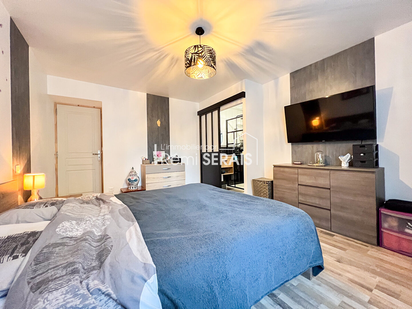 - une chambre avec salle de douche et dressing