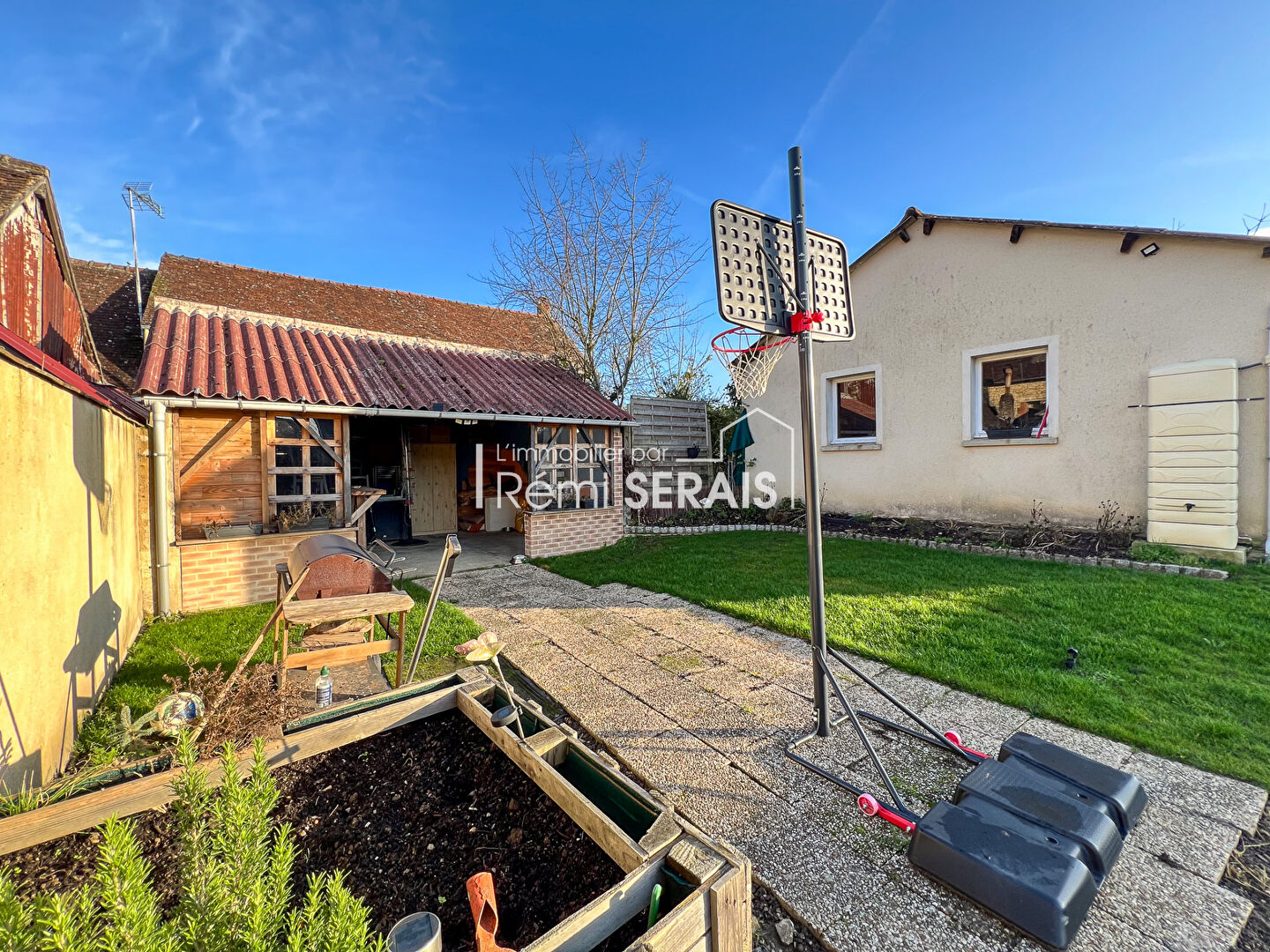 Jardin avec dépendance et grand garage, entrée par portail électrique