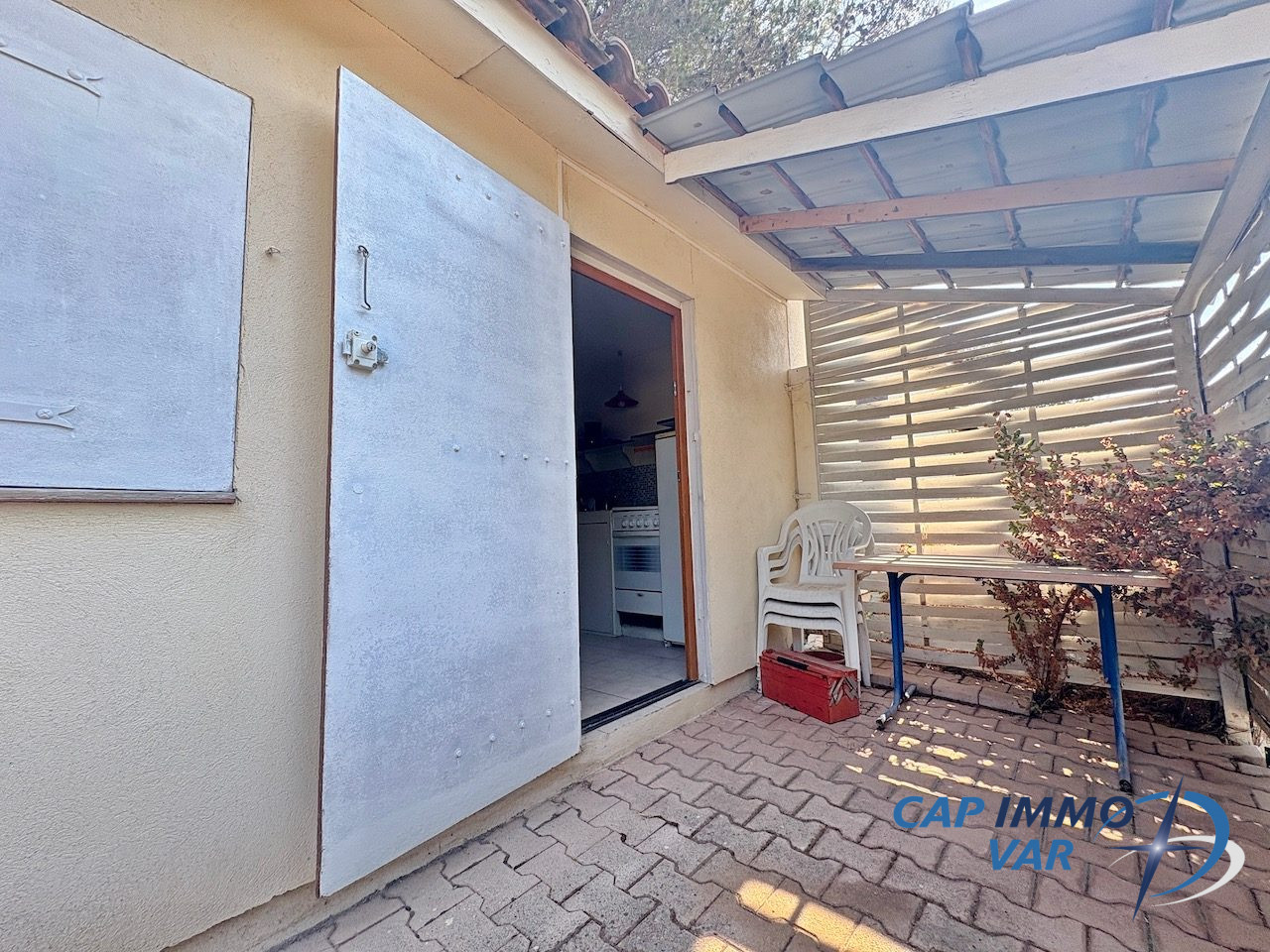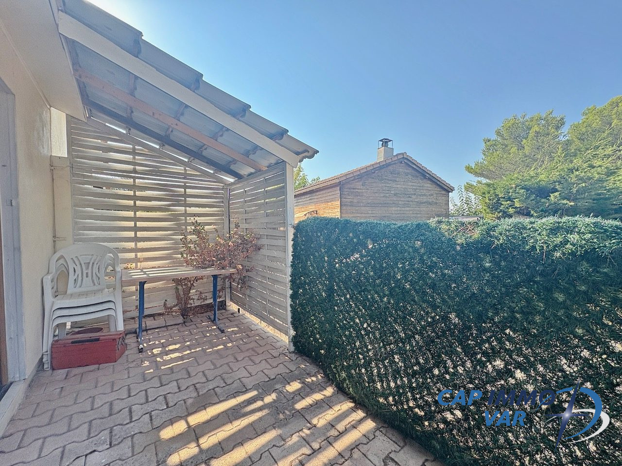 LE CAMP DU CASTELLET - Le chalet situé au sein de la résidence de loisirs Eden Park au Camp du Castellet, avec piscine collective, bénéficie d'un emplacement privilégié sur une parcelle cadastrée d'environ 204 m². Actuellement divisé en deux logements indépendants, il offre une configuration idéale pour accueillir deux familles ou proposer de la location saisonnière. La superficie totale est de 54,16 m².