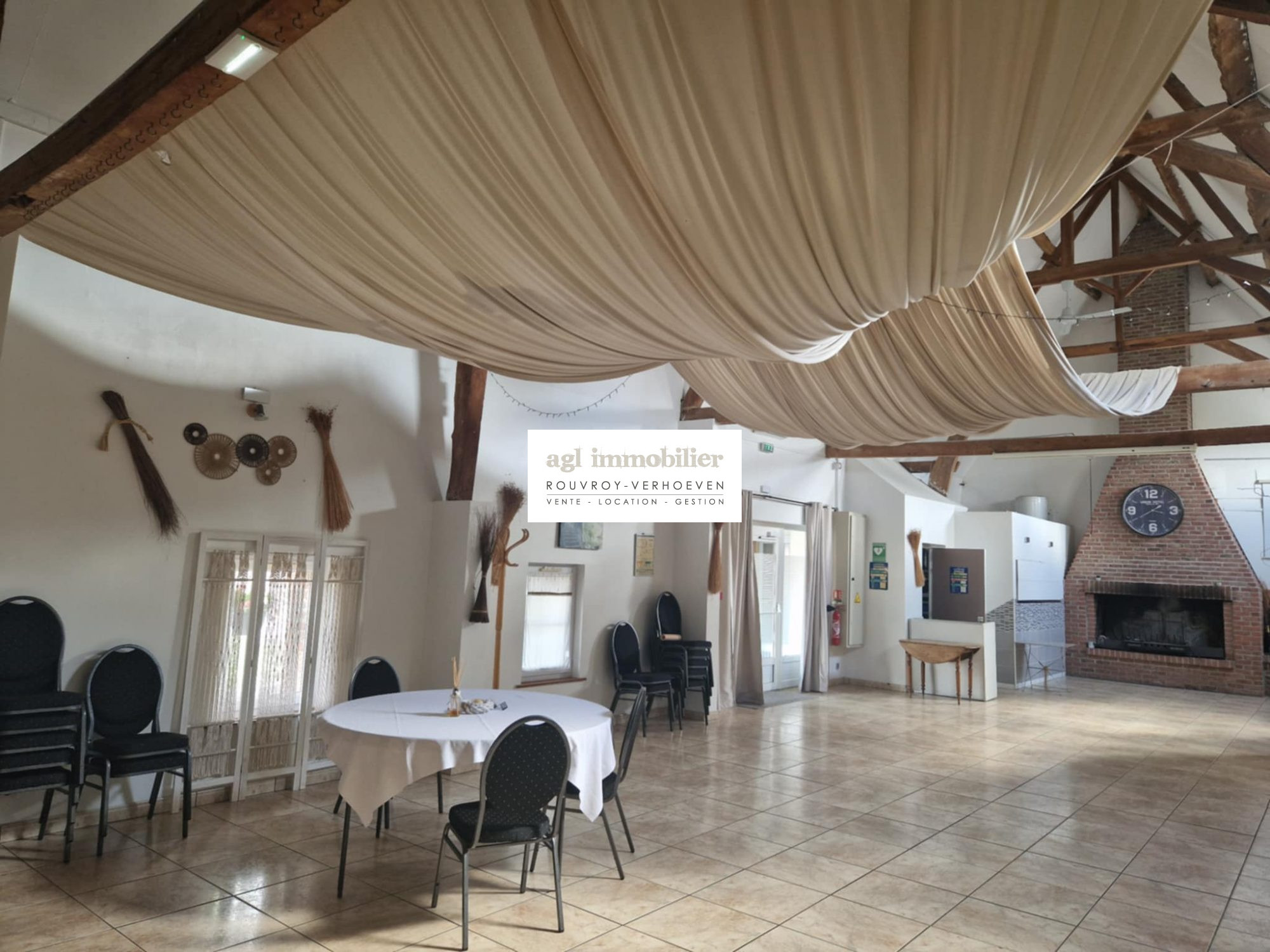 Le deuxième bâtiment comprend une salle de réception conviviale avec sa cheminée et son coin cuisine aménagée pour professionnels. Elle offre un espace idéal pour accueillir des événements, des séminaires, des mariages ou des soirées privées, avec une capacité d'accueil d'environ 70 personnes. Ce bâtiment dispose de 5 chambres dont 2 aux normes PMR garantissant un confort optimal pour tous.