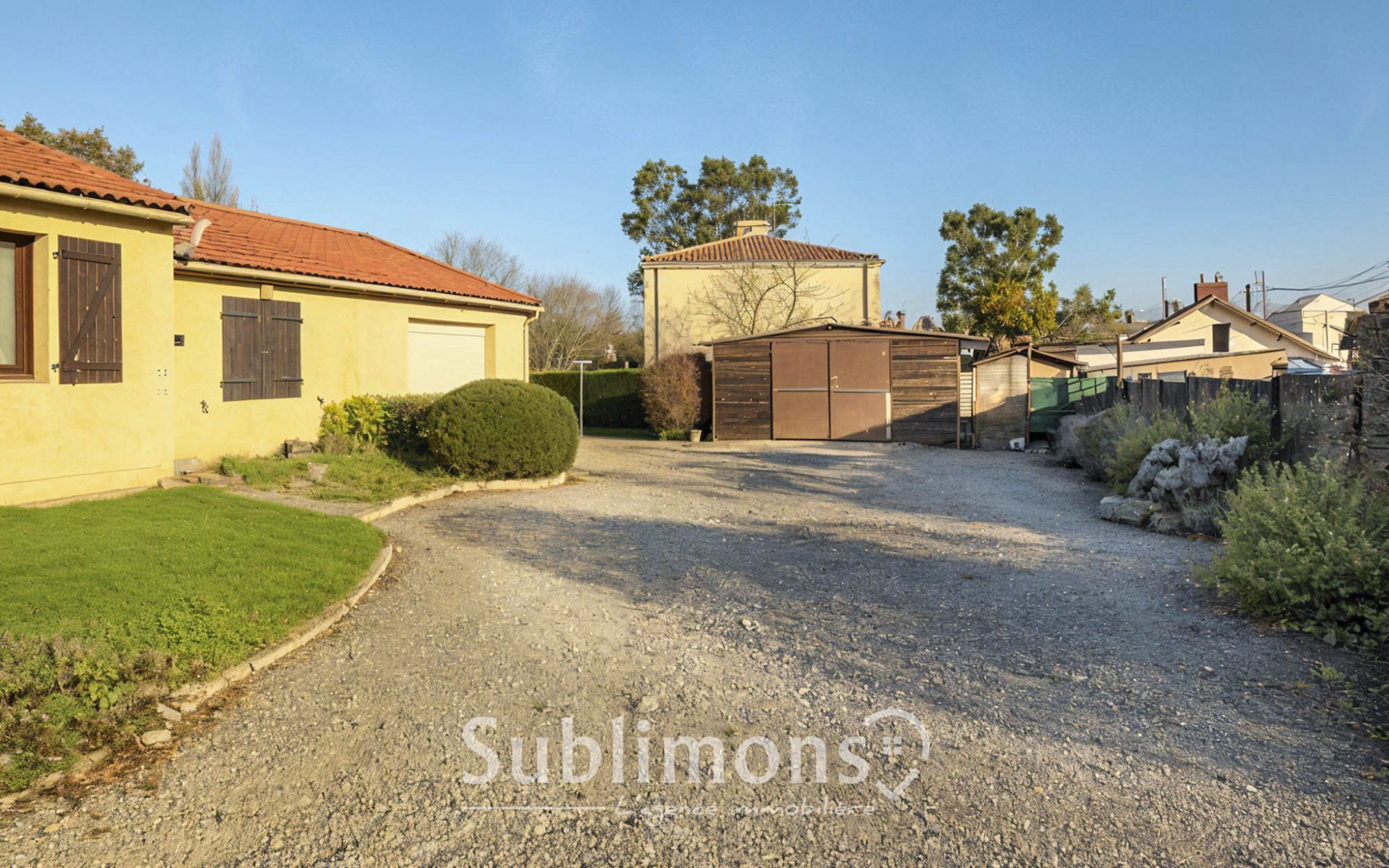 Magnifique parcelle de 1486 m² avec deux terrasse dont une couverte et, en annexe, un atelier/ cabanon de jardin.