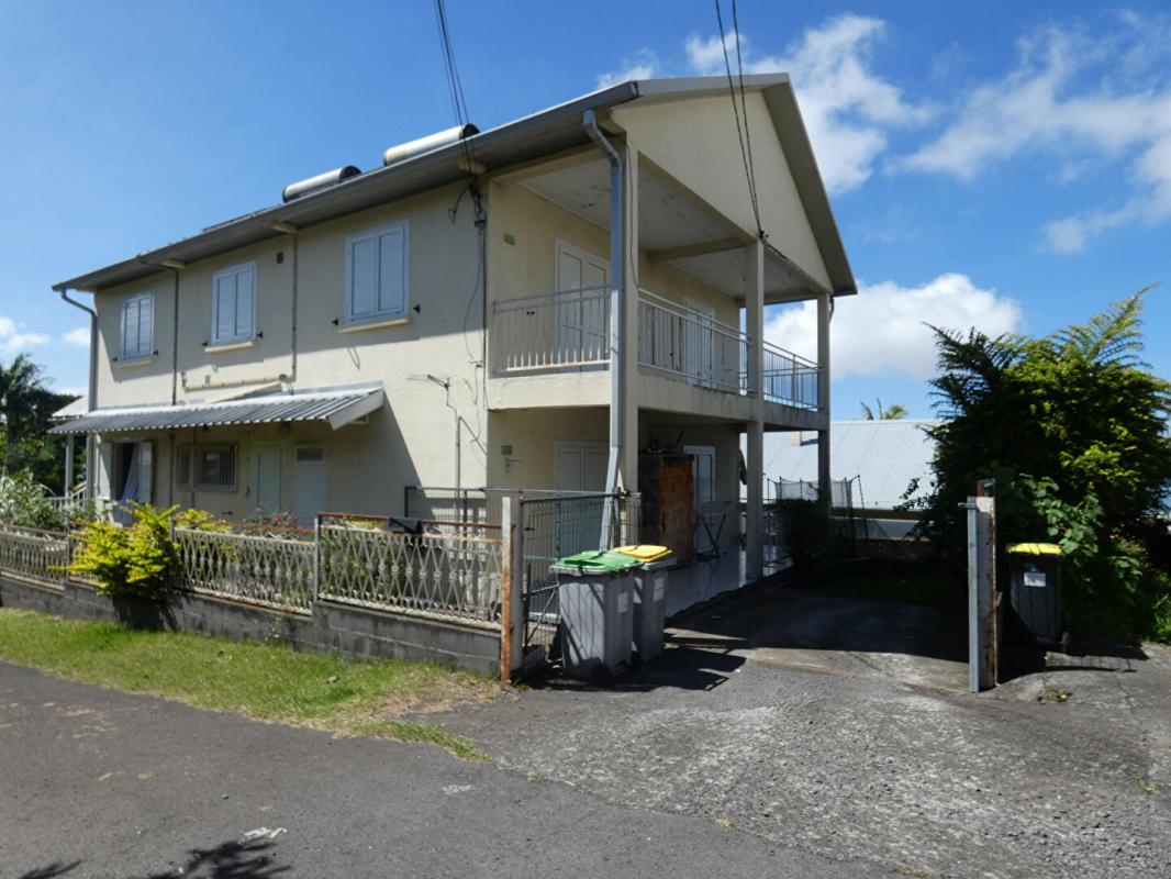 97430 Le Tampon grande maison env 165m² sur env 358m² de terrain. La maison est composée ainsi : au RDC T4 env 85m² plus terrasse de 15 m² et son jardinet parking clos, loué. Au 1er étage T3 env 79 m² plus terrasse de 15m² et petit jardin env 50m² pour parking, libre.