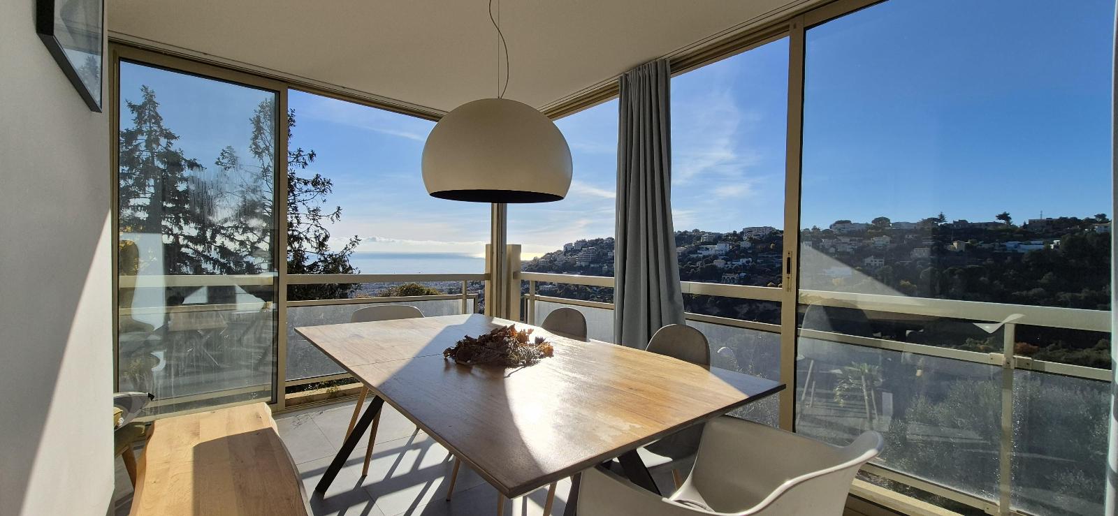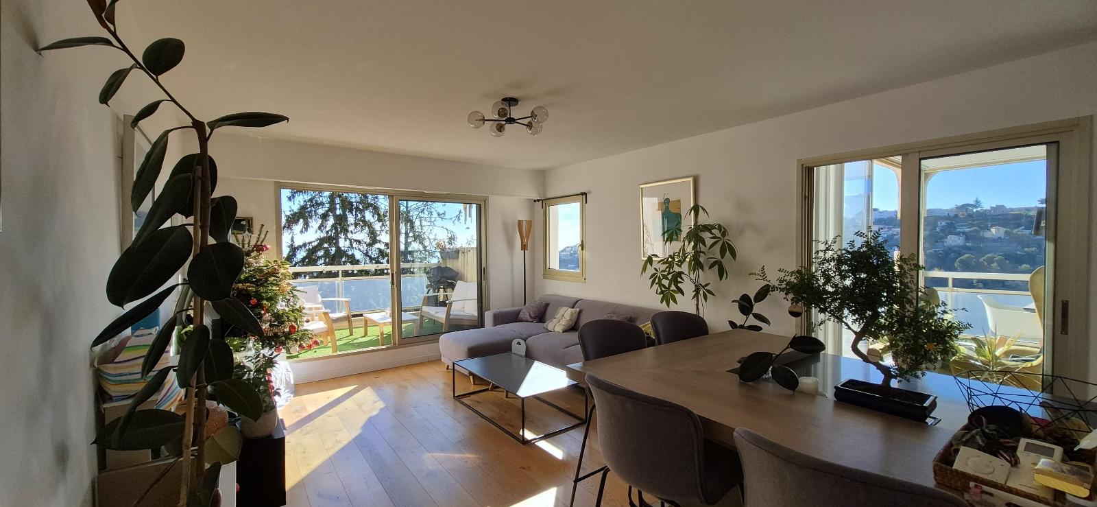 Fonctionnel, l'appartement est parfaitement optimisé : l'entrée avec placards dessert un grand séjour avec cuisine ouverte, donnanat sur une terrasse plein sud vue mer , une vaste loggia de 20 m2 surplombant les collines et la mer, 3 chambres dont 2 en enfilades au calme ainsi q'une la salle de bains et WC indépendants.