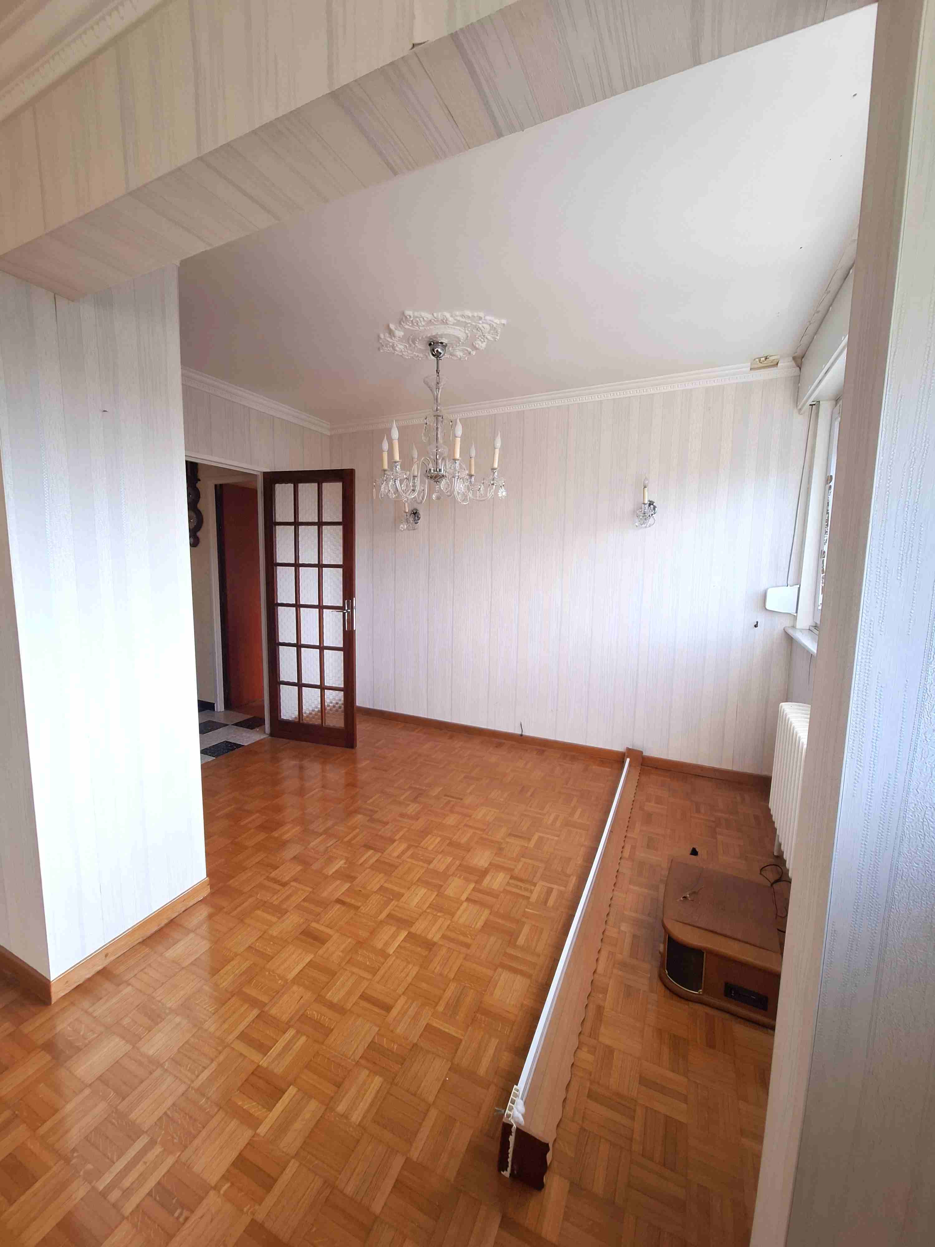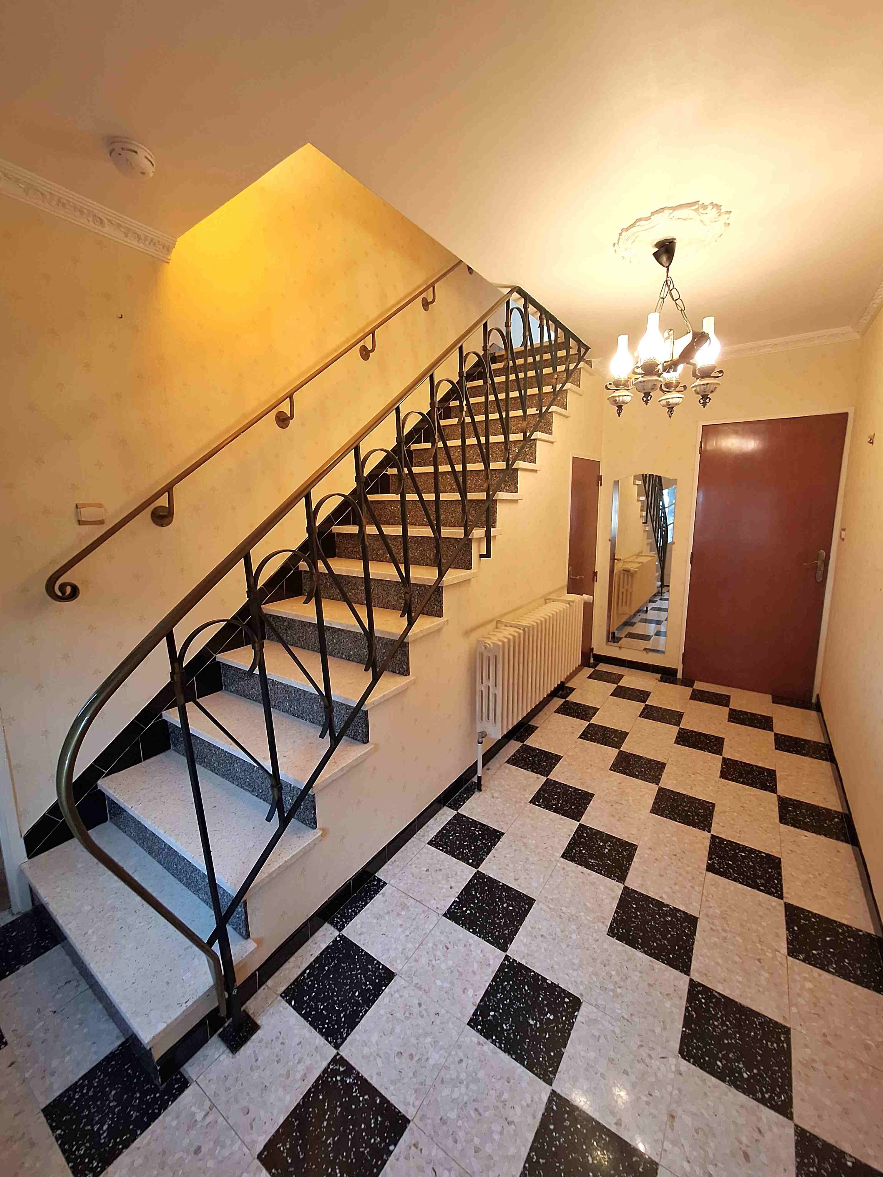 A l'étage, un dégagement desservant une cuisine (+/- 13m²), un salon-séjour lumineux (+/- 28m²), deux chambres à coucher (+/- 11m²), une salle de bains et un wc.