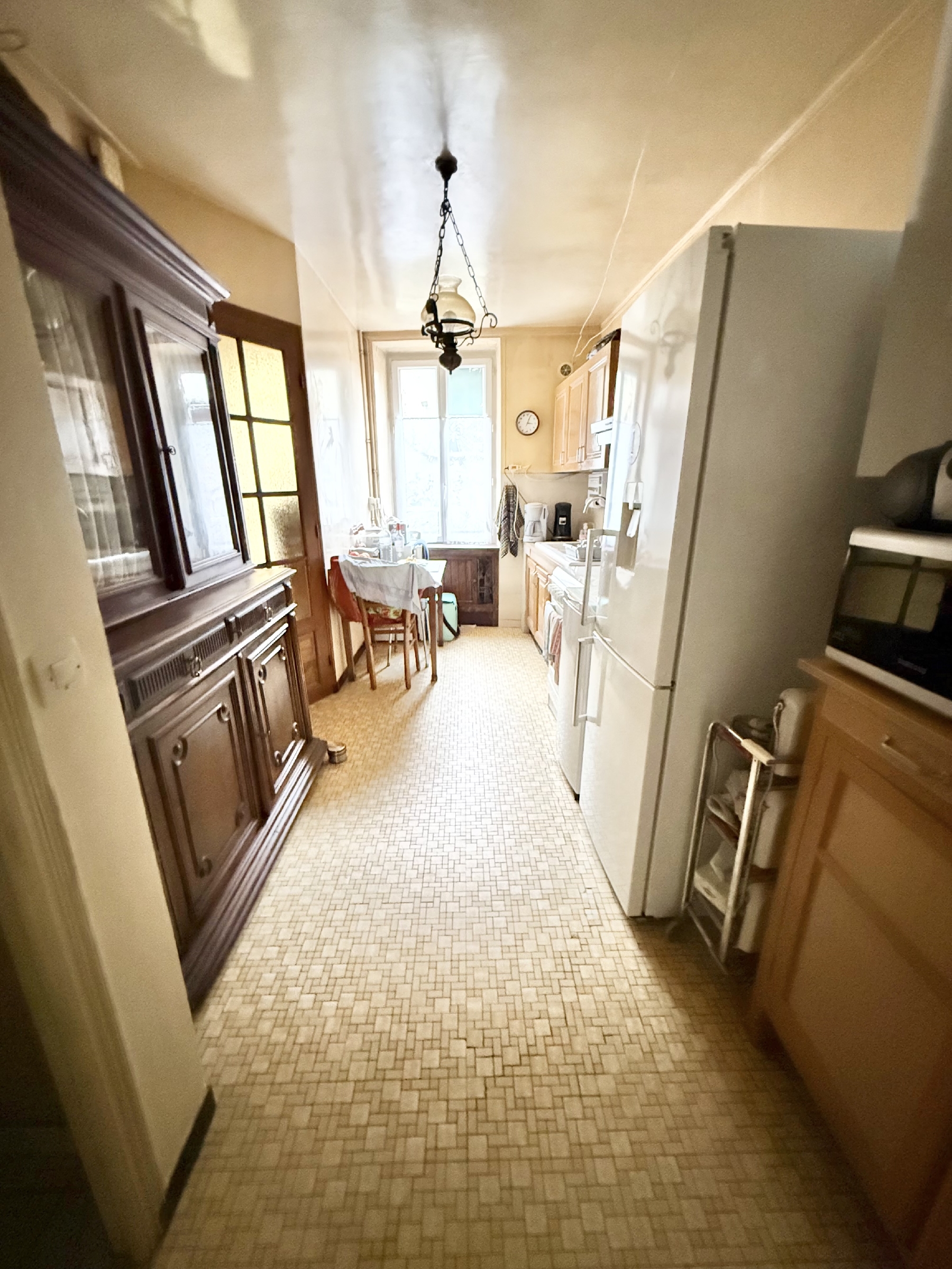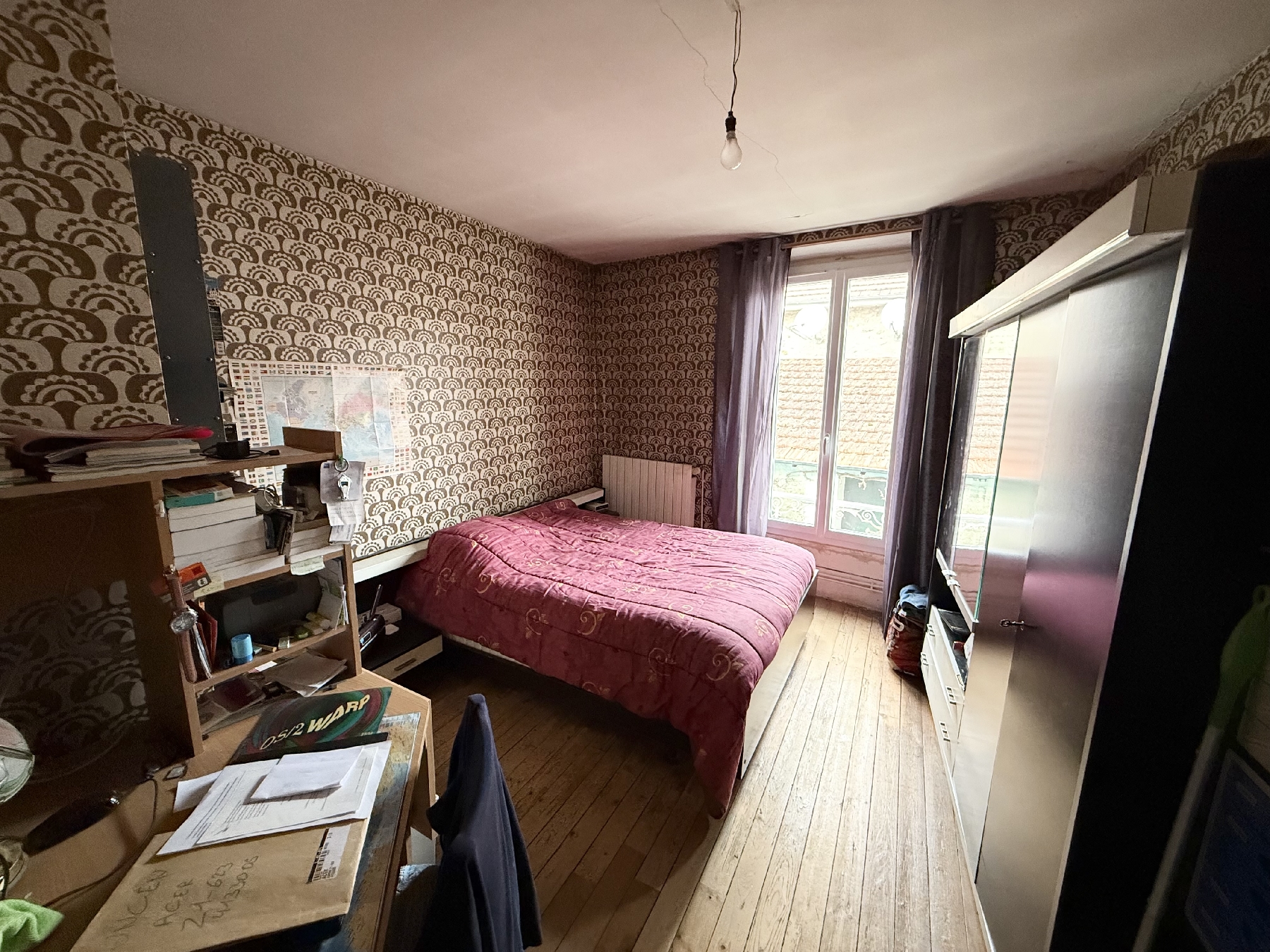 MAISON DE VILLE comprenant au rez-de-chaussée entrée, cuisine, séjour, wc ; à l'étage palier 2 chambres, salle d'eau ; au 2e grande pièce de grenier isolé aménageable en 3 è chambre.