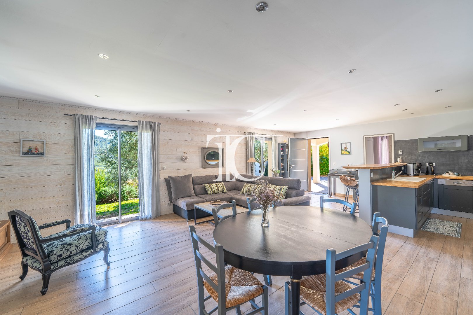 D'environ 104 m², elle séduit par ses volumes généreux et sa circulation fluide. La pièce de vie de 52 m² réunit salon, salle à manger et cuisine ouverte, lumineuse et conviviale. La cuisine moderne et entièrement équipée offre de nombreux rangements et s'intègre parfaitement à l'ensemble.