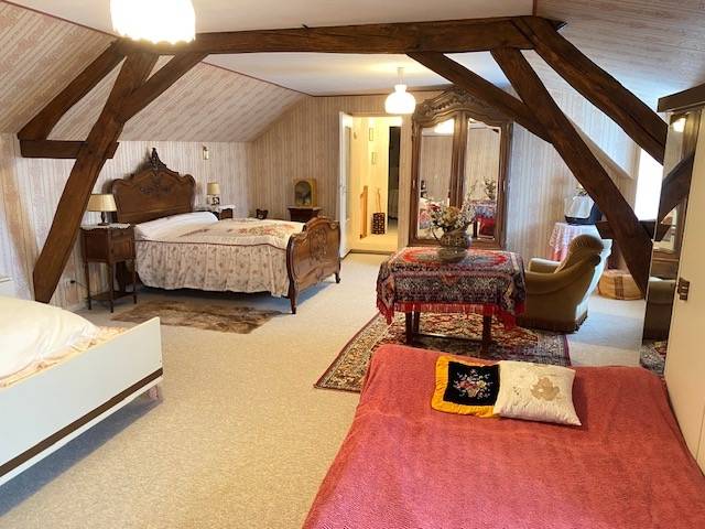 En rez de chaussée se trouve une entrée, une grande cuisine, un vaste séjour-salon, deux spacieuses chambres, une salle de bain et un wc, à l'étage deux très grandes chambres et un dressing. Attenant à la bâtisse, une buanderie-chaufferie ainsi qu'une cave. En retour une magnifique grange avec son atelier pour bricoler ou stocker. Cour arborée close devant et jardin sur l'arrière idéal pour installer une piscine ou un beau potager.