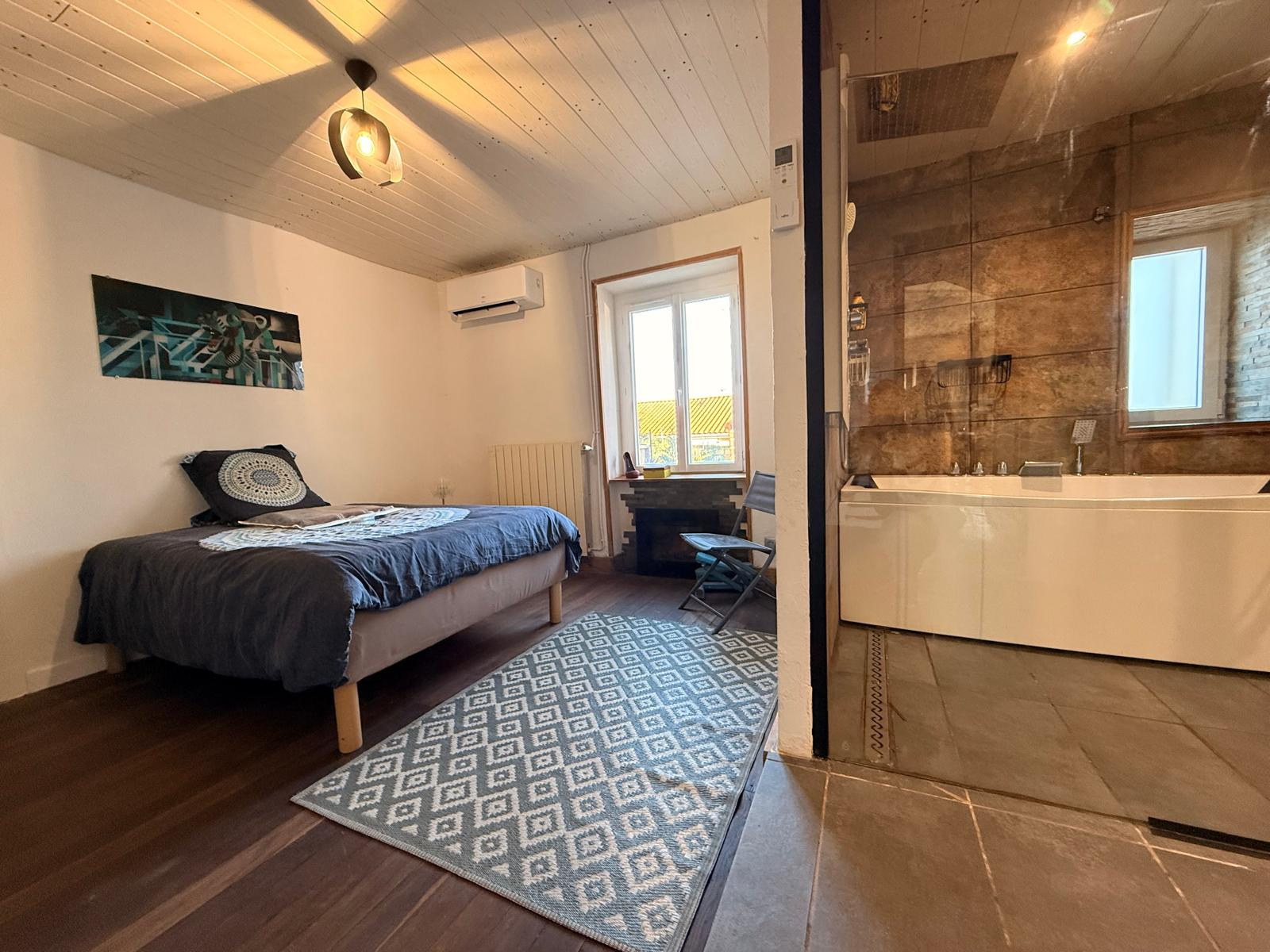 - La partie parentale, offrant une chambre lumineuse, une chambre dédiée aux dressings, ainsi qu'une salle d'eau avec WC, actuellement en cours de rénovation.