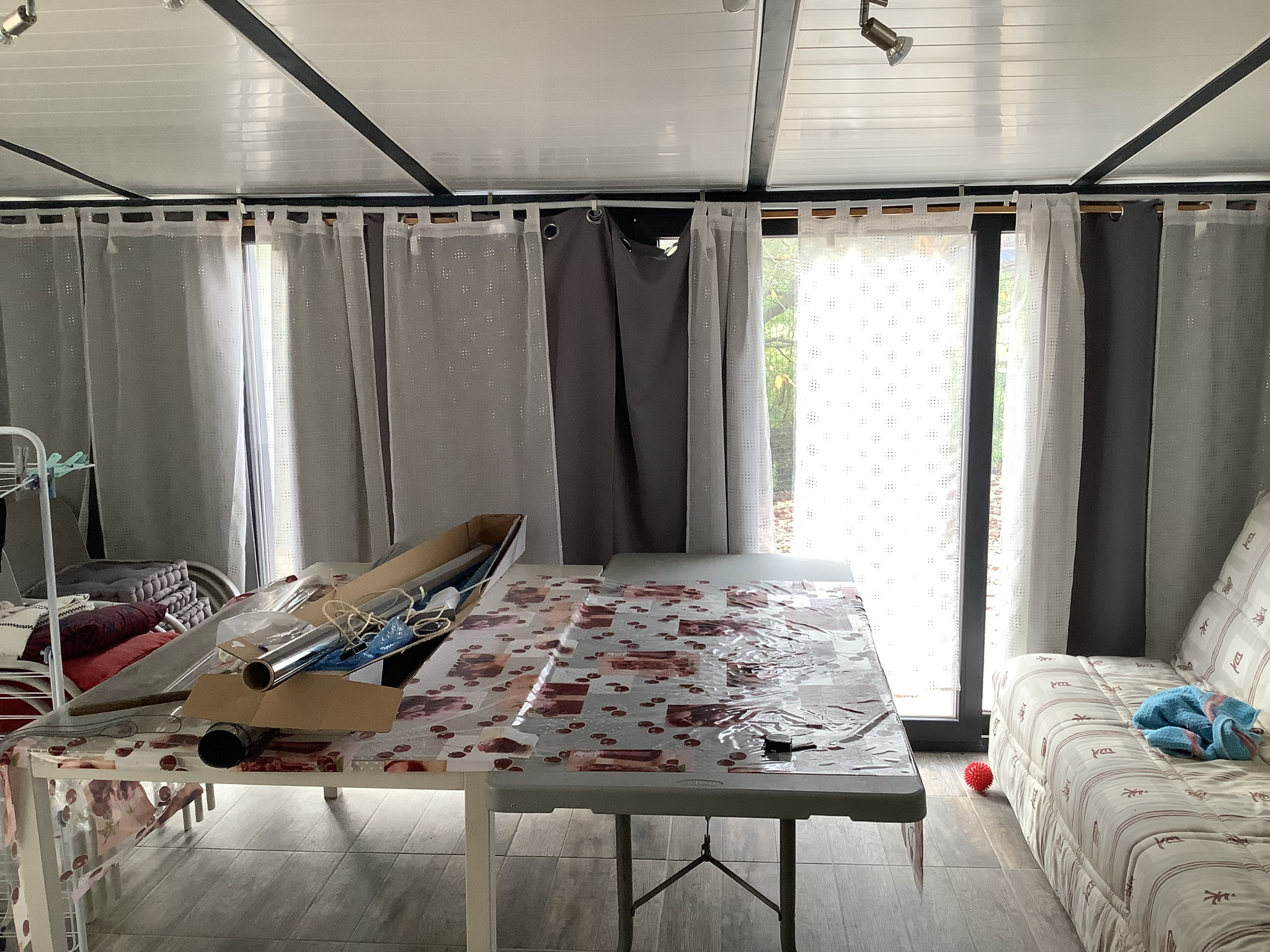 Au fond du séjour, une véranda fermée prolonge agréablement l'espace de vie.