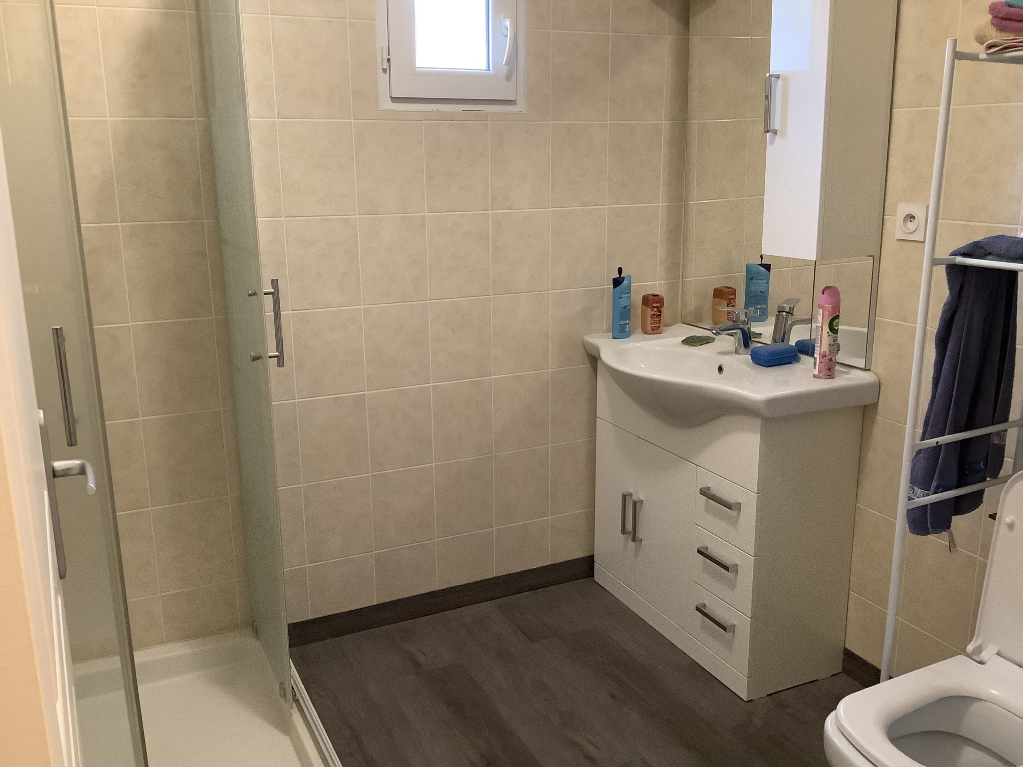 À gauche, un WC indépendant, une salle d'eau, et un accès direct au garage*,