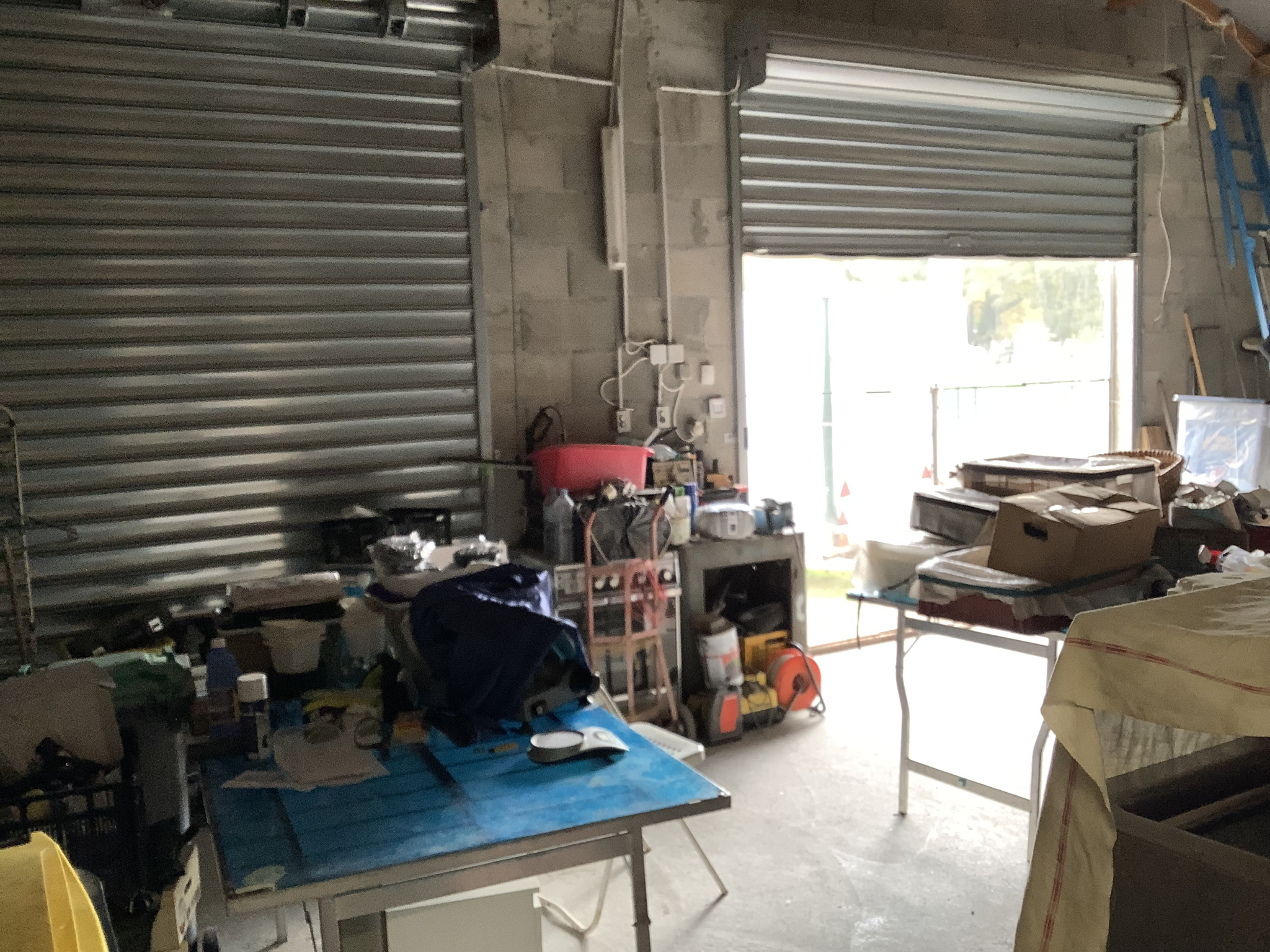 * le garage/atelier présente une surface de 70 m2, il est équipé de 2 portes sectionnelles et d'une mezzanine